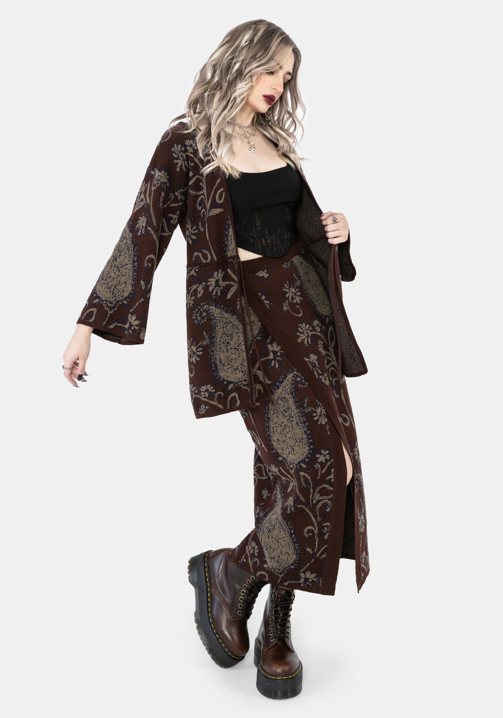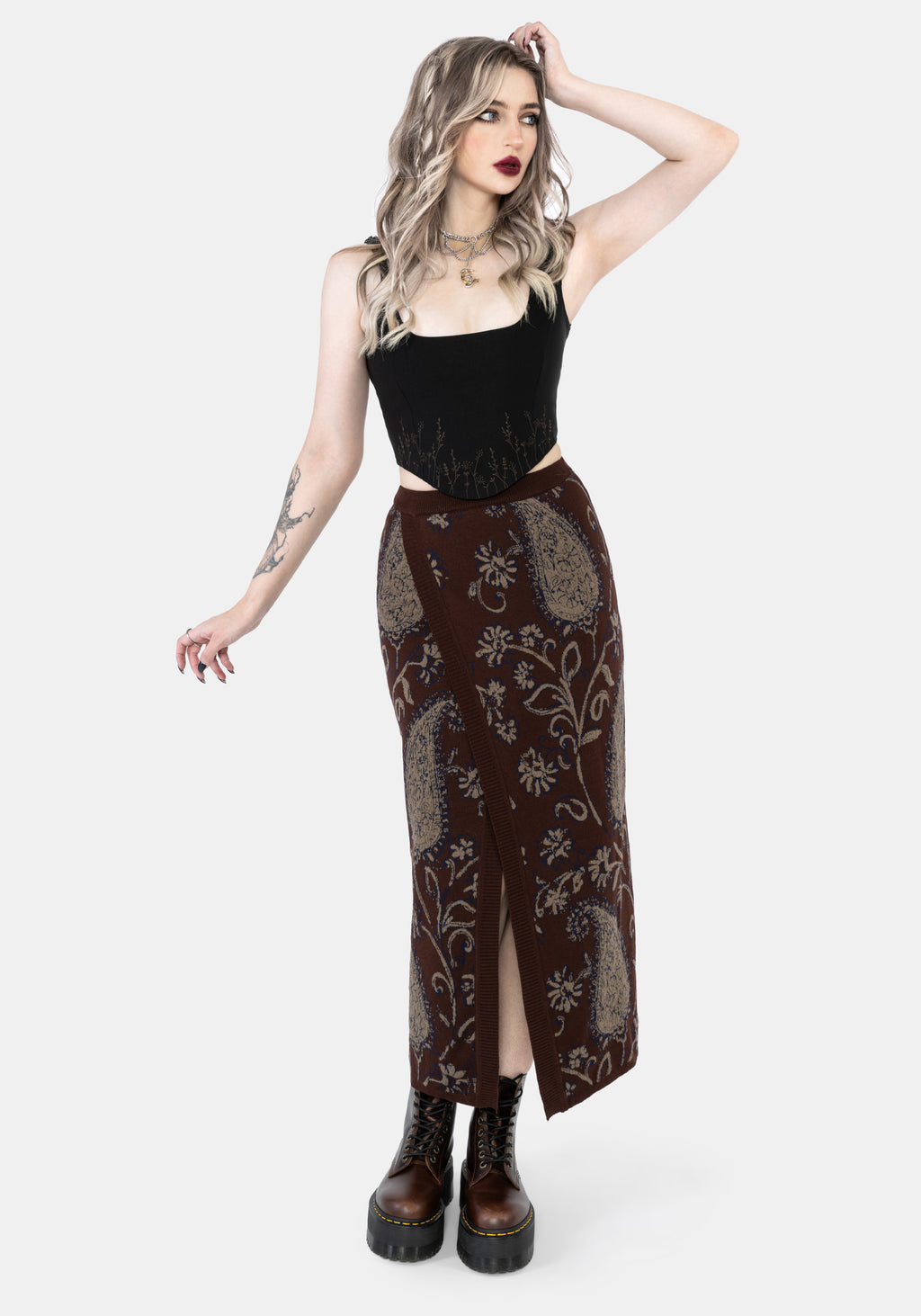 Gillian Cotton Paisley Knit Midi Wrap Skirt