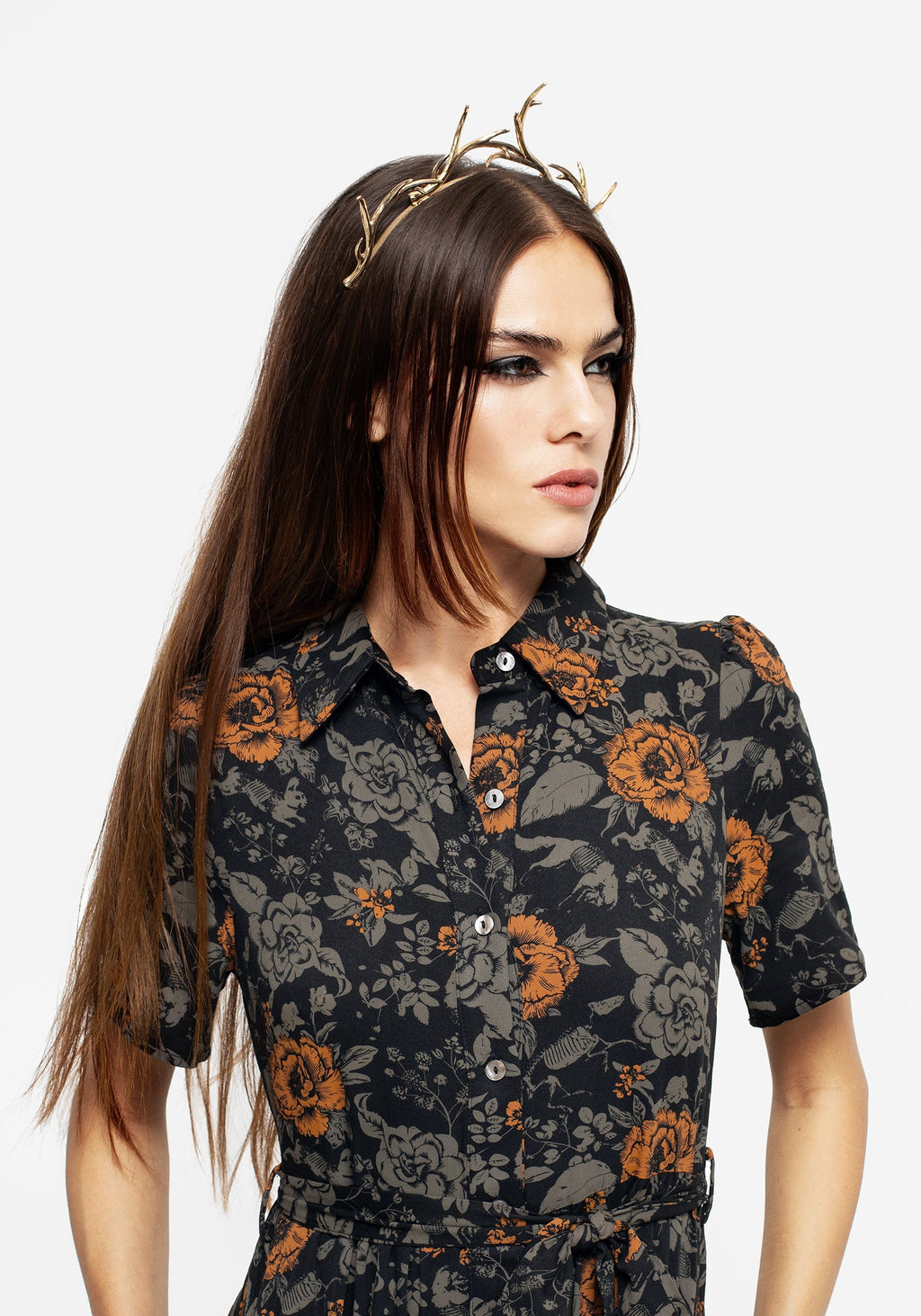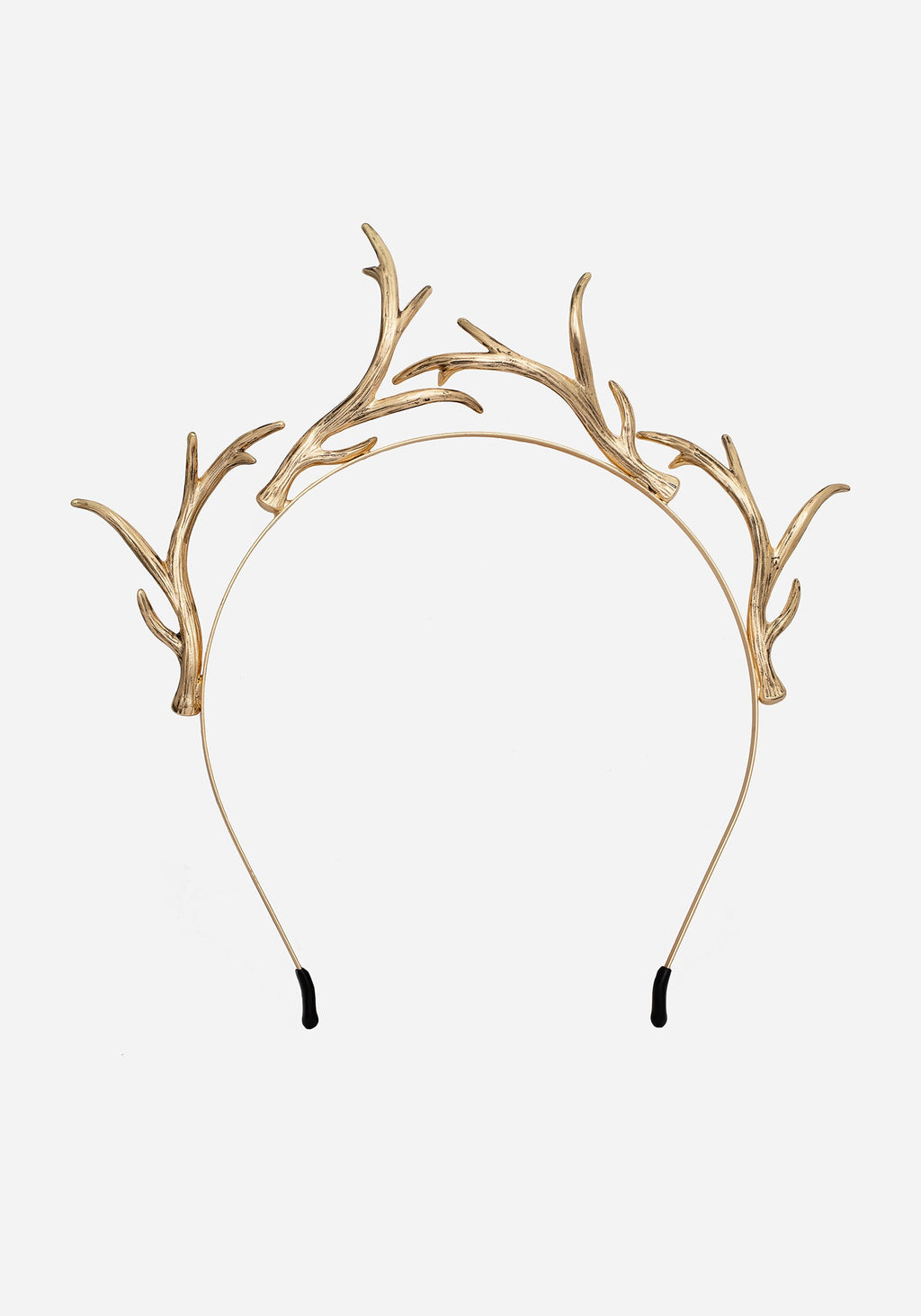 A simple but elegant hair accessory to celebrate the natural world. This easy-to-wear metal headband features moulded golden antlers add a glistening, whimsical touch. Perfect for forest-dwelling creatures!