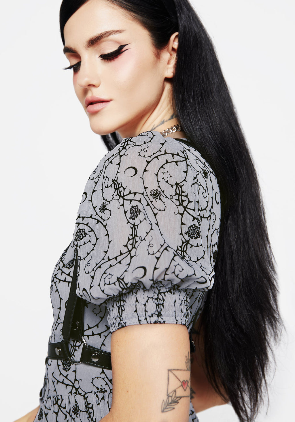 - Pair this soft style with black accessories to bring out its dark side