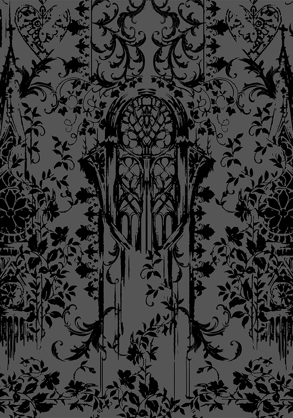 Thorned Flocked Chiffon Castle Print Yoke Front Frill Sleeve Mini Dress