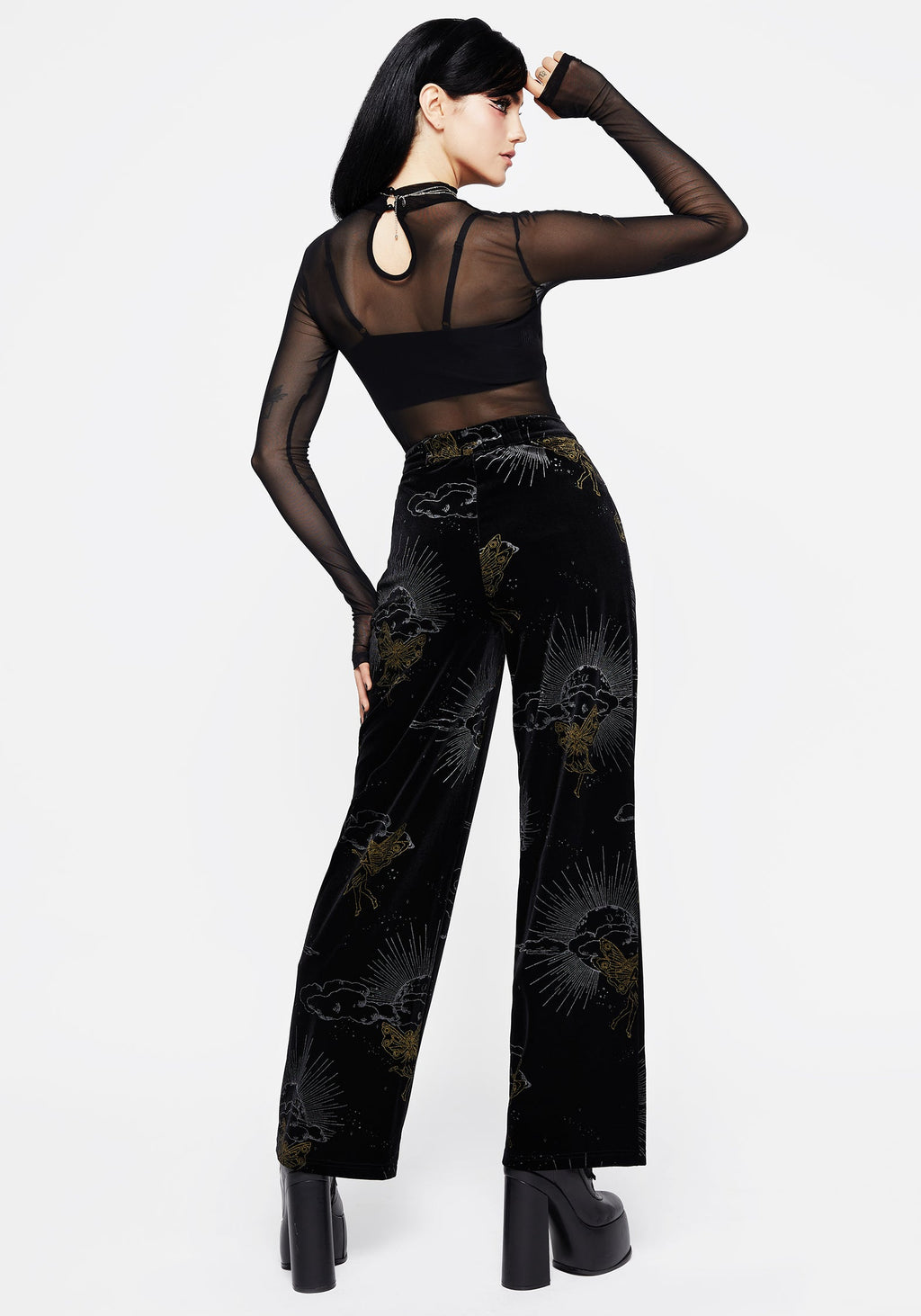 - Sumptuous black velour with gold & silver fairy & cloud foiled print