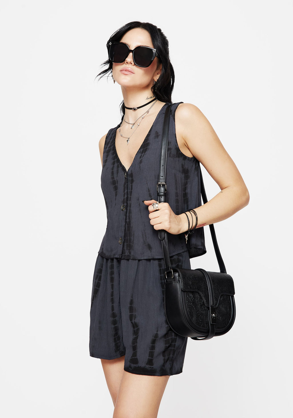 • Navy Blue & Black Tie Dye Button Up Waistcoat Top