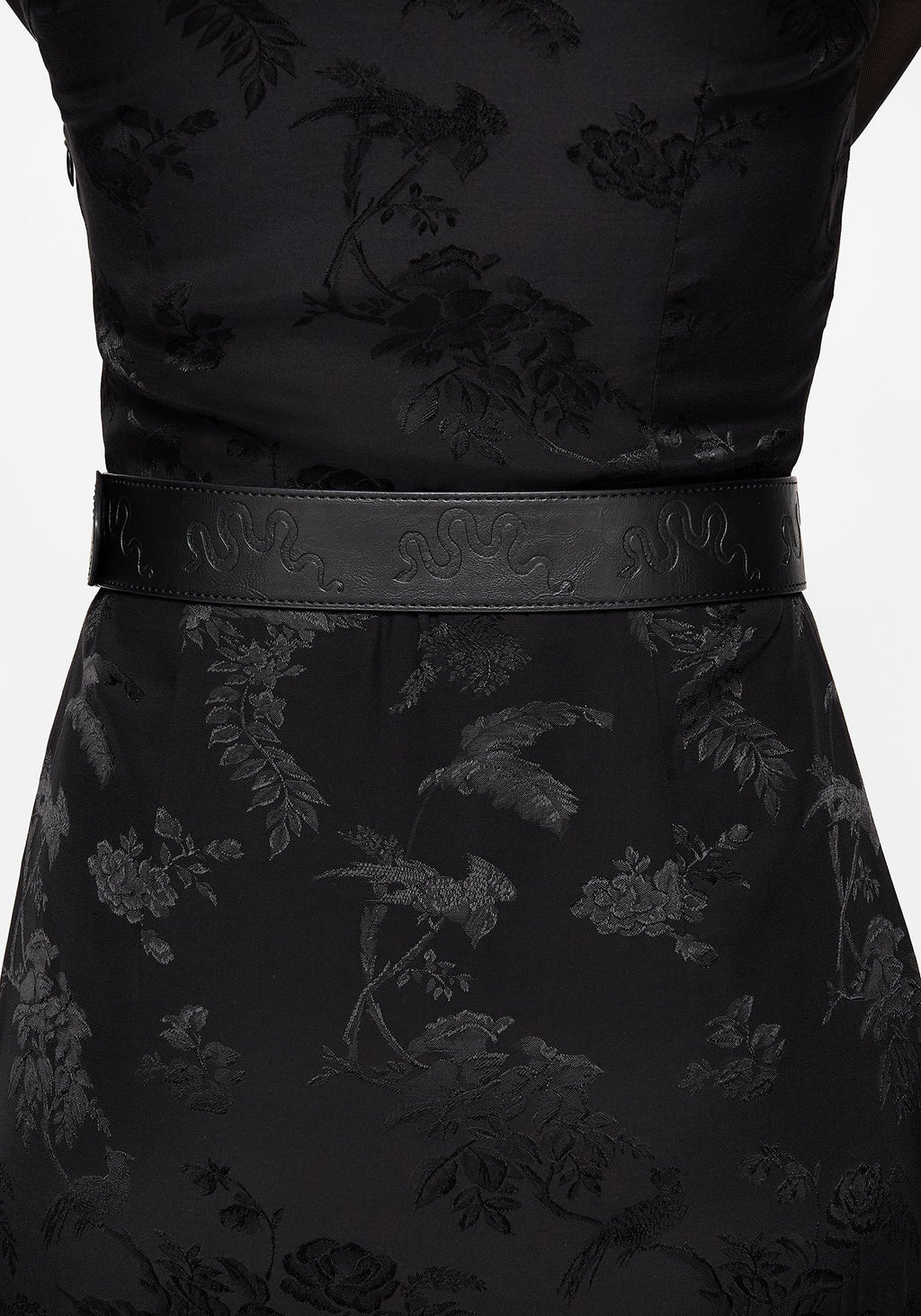 - Debossed snake design runs the length of the belt