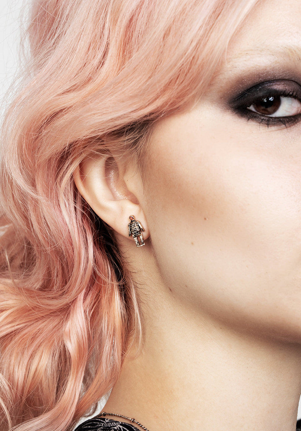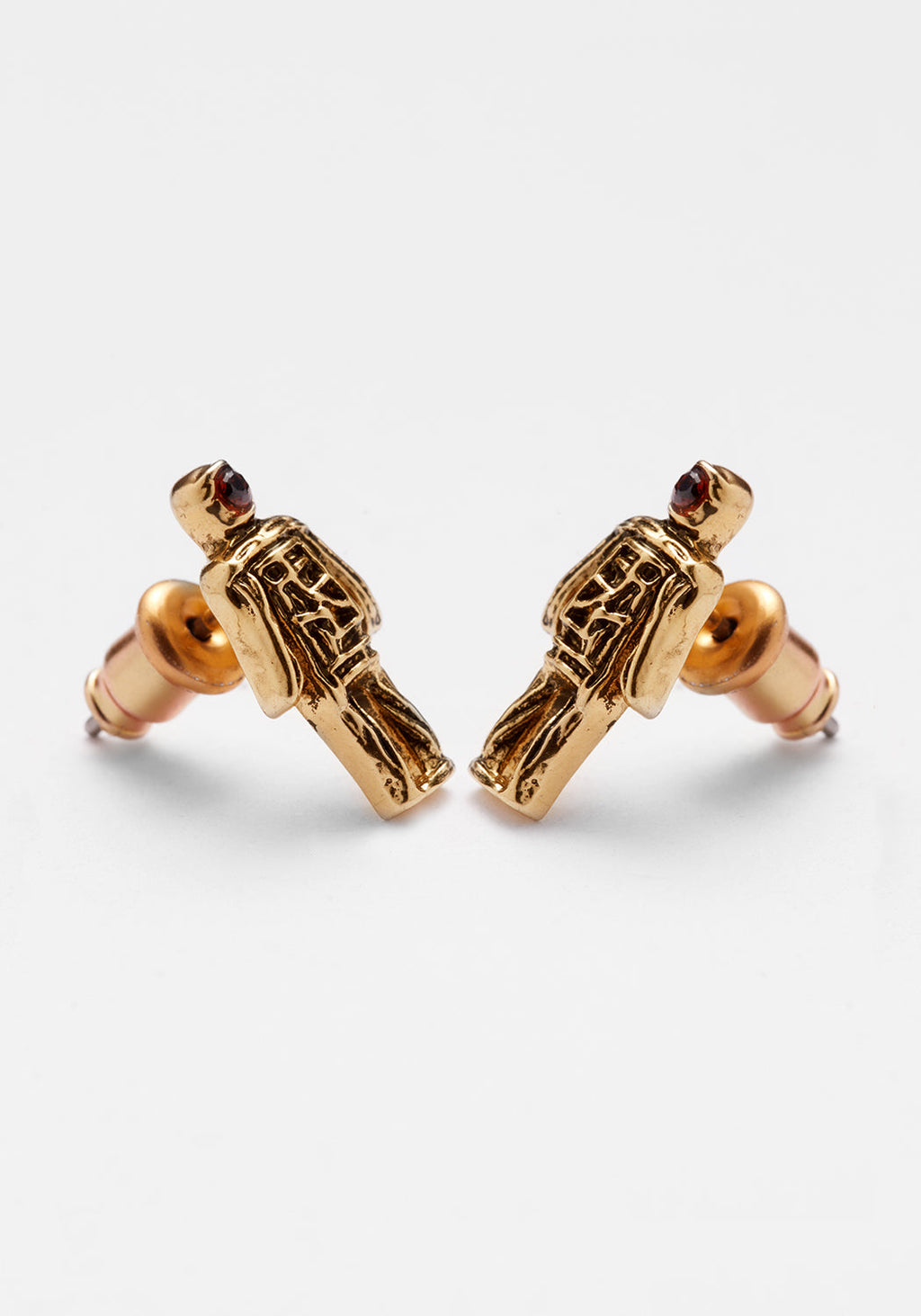 Don't keep the Wicker Man Stud Earrings waiting! Watch these folk-horror beauties glint 'n' gleam like a May Queen in the midsummer sun - they're plated with real gold! Each Wicker Man stud is immaculately engraved and encrusted with scarlet-red cubic zirconia. Finished with clutch-back fastenings, they're wickedly wearable too.