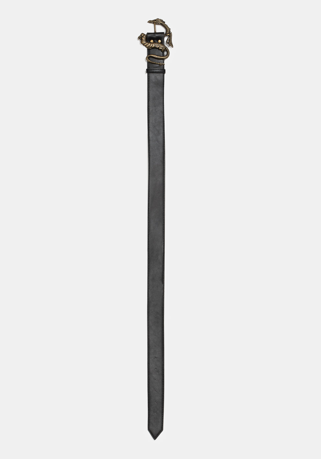 - Three-dimensional moulded brass dragon works as both belt buckle & keeper for a sleek look