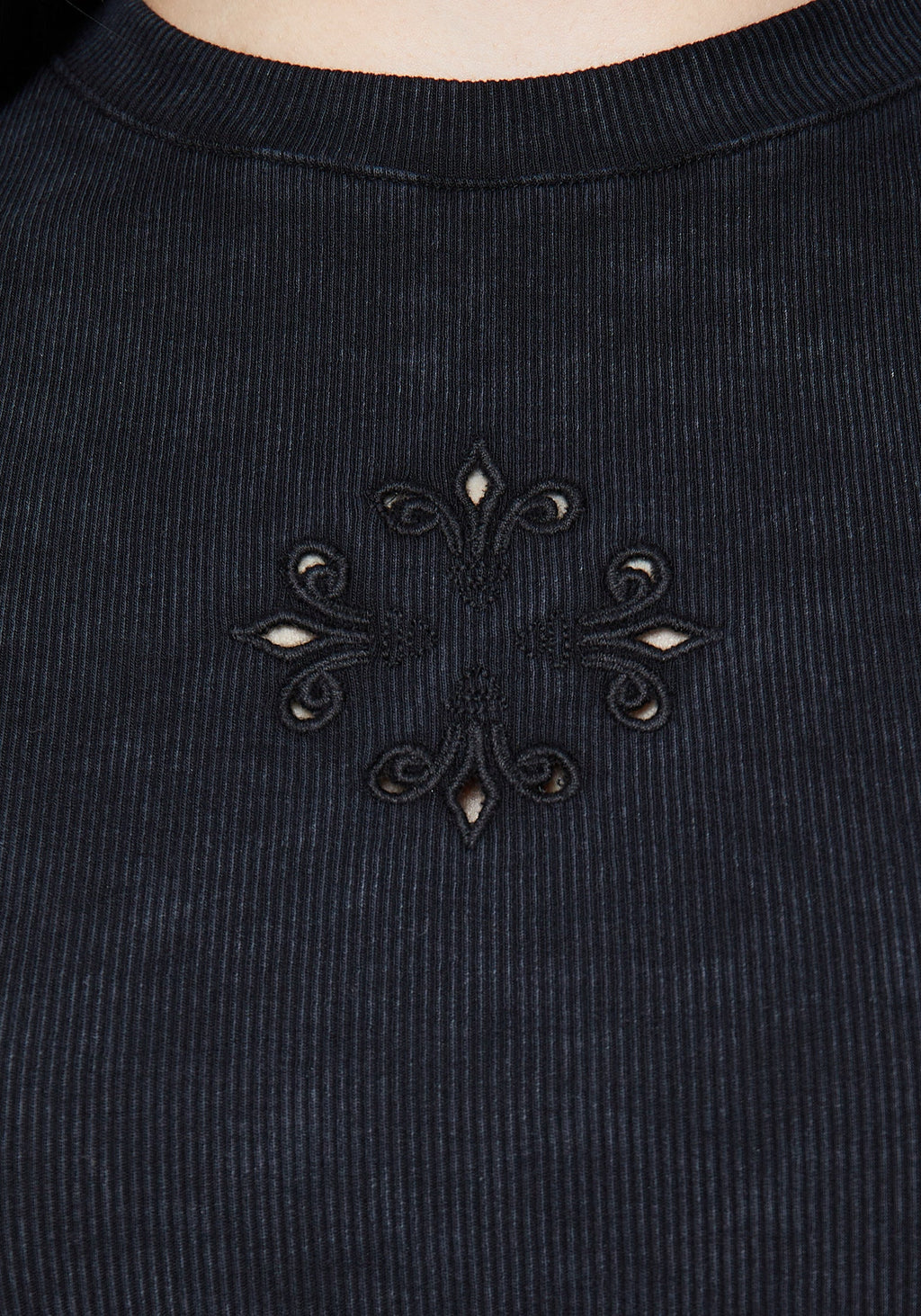 Christina Cotton Cut Out Detail Washed T-Shirt