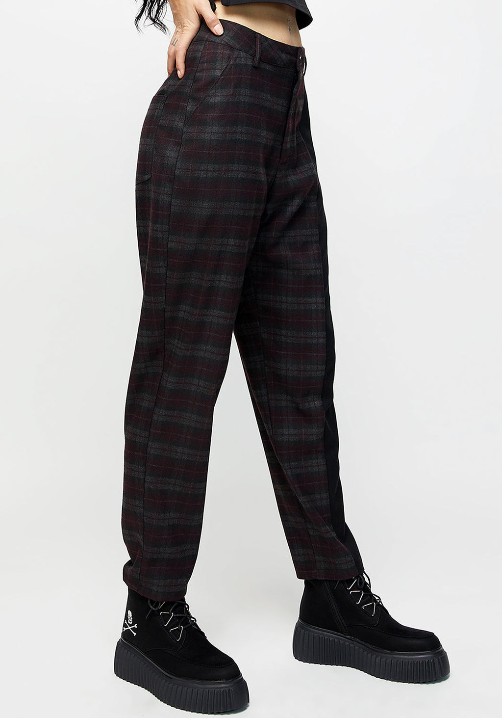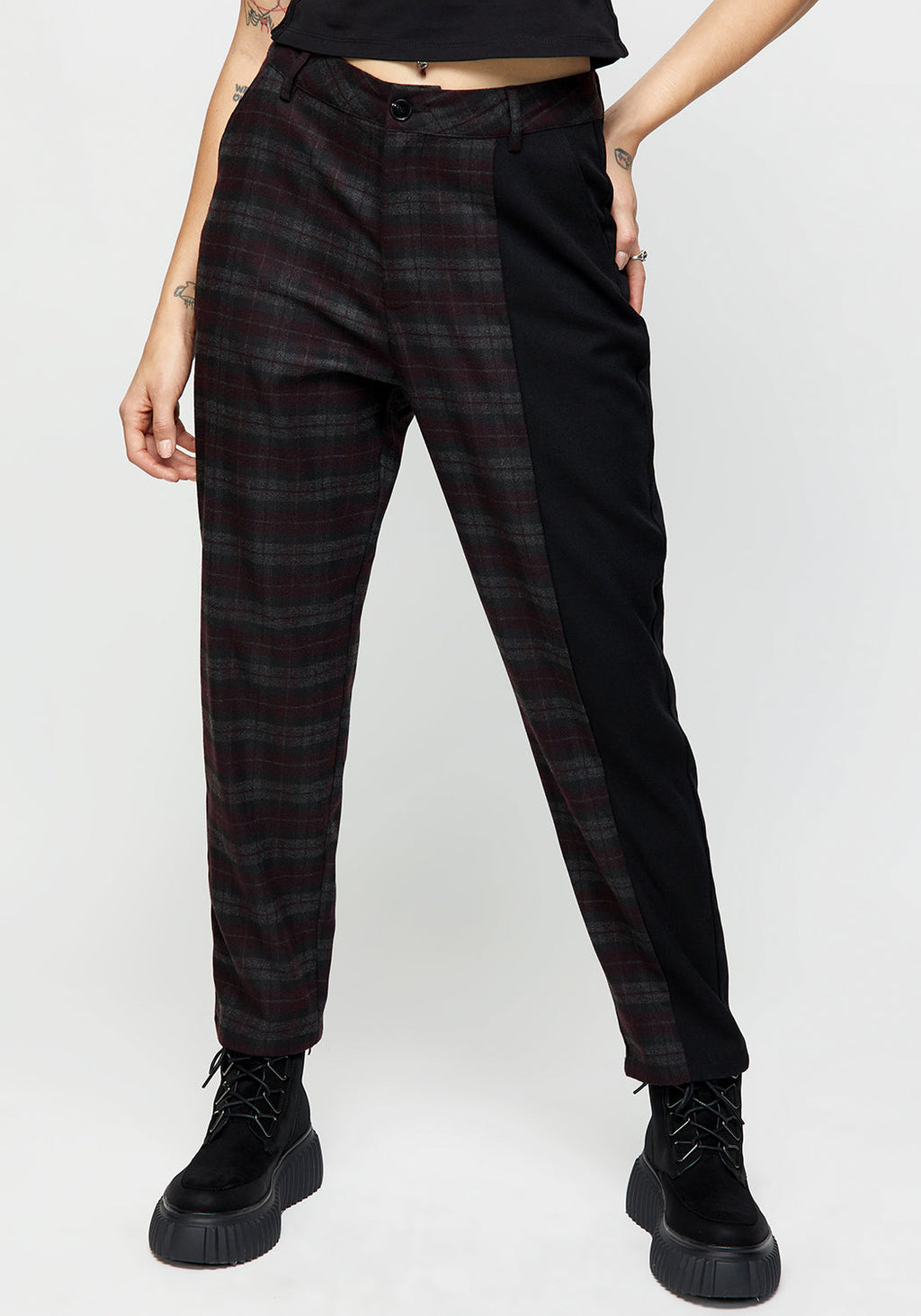 Dropout Spliced Check Mom Trousers