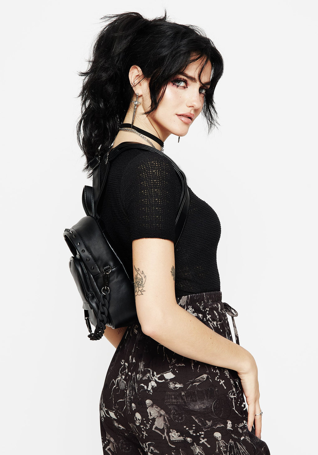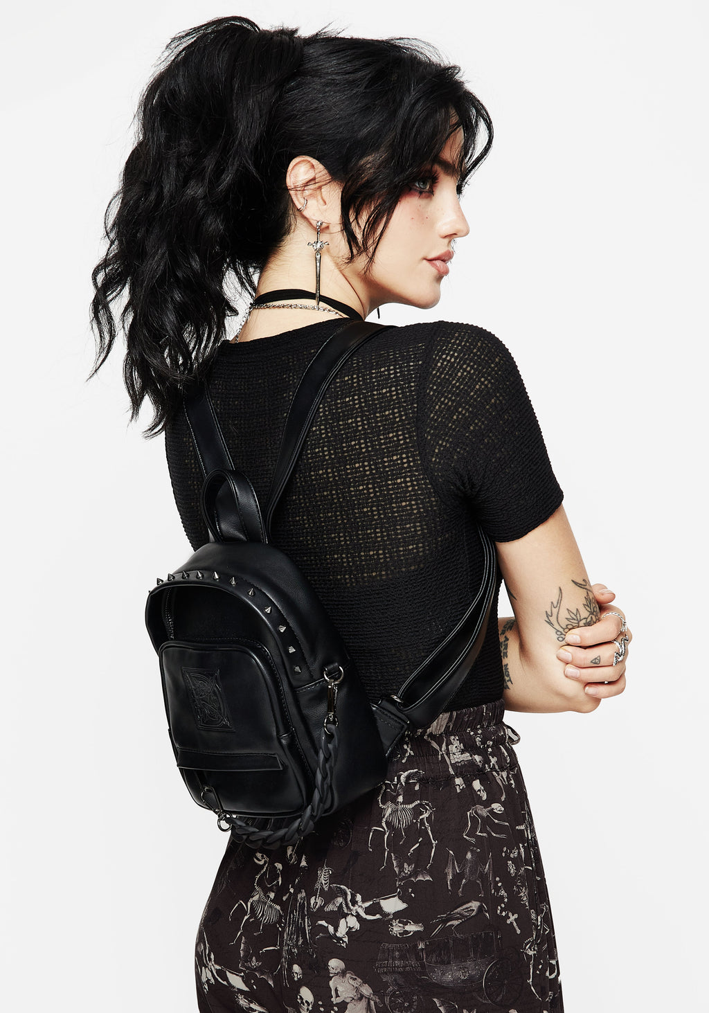 - Black debossed faux leather mini backpack