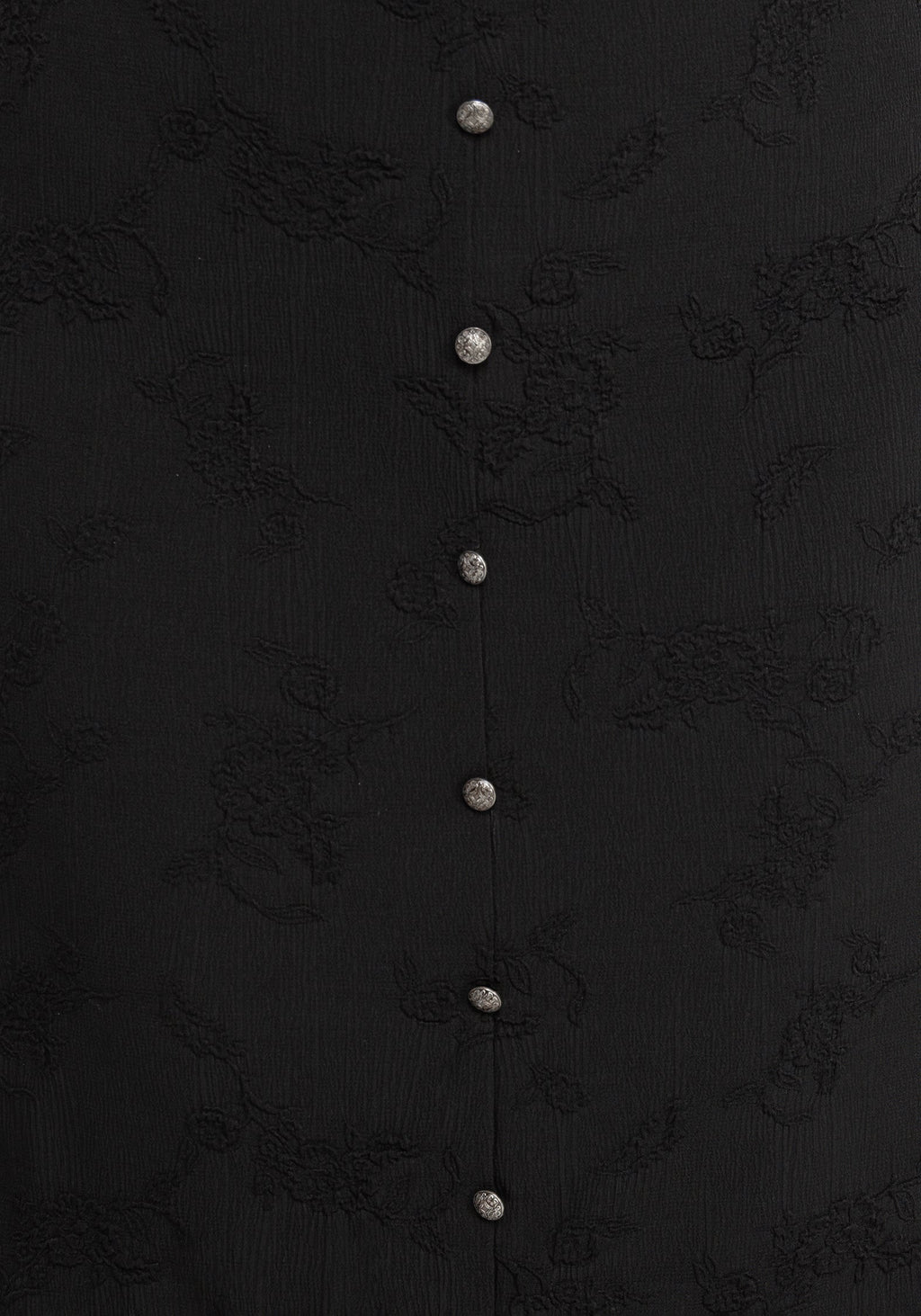 - Crinkle crepe-like black fabrication with textured floral jacquard design