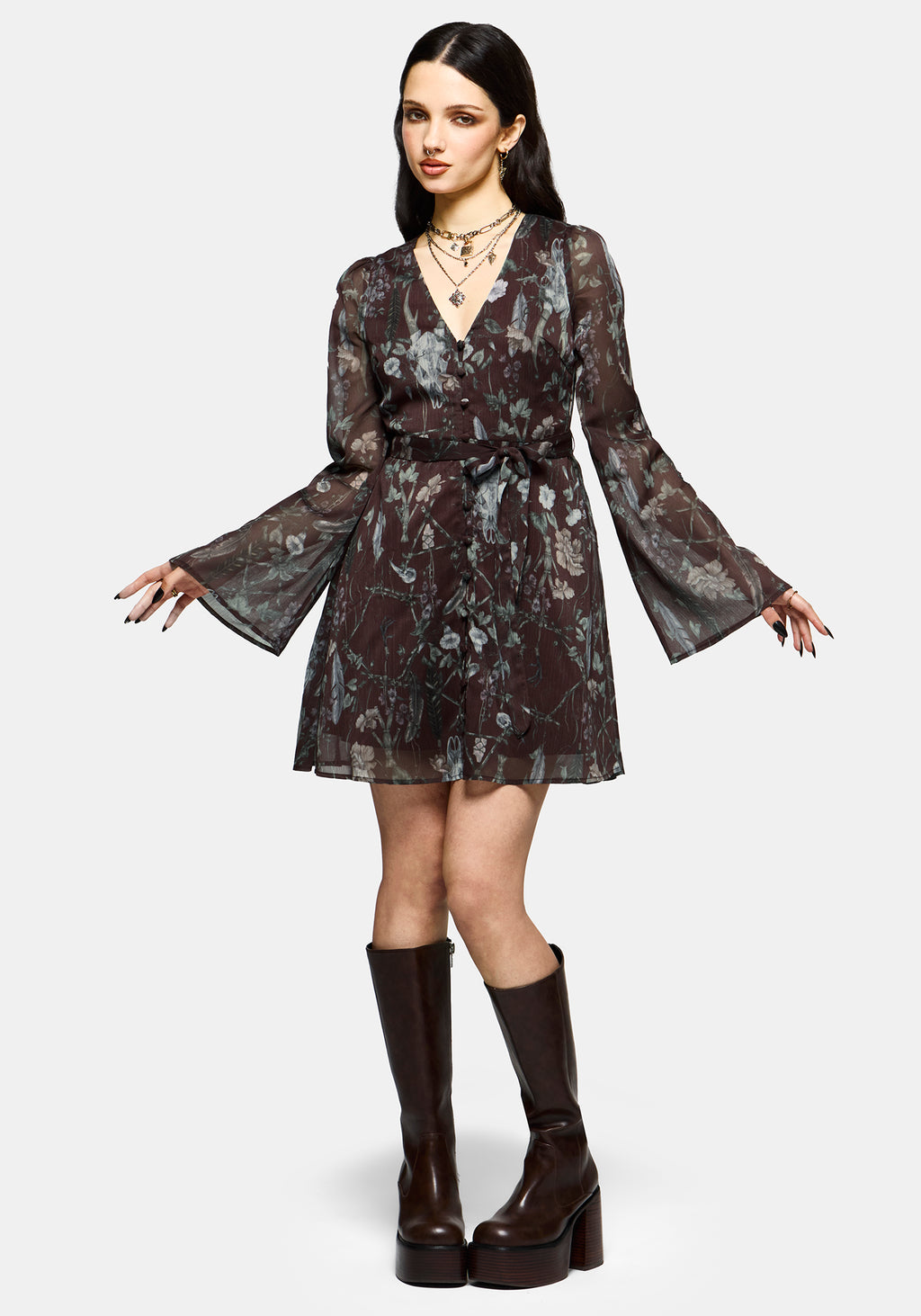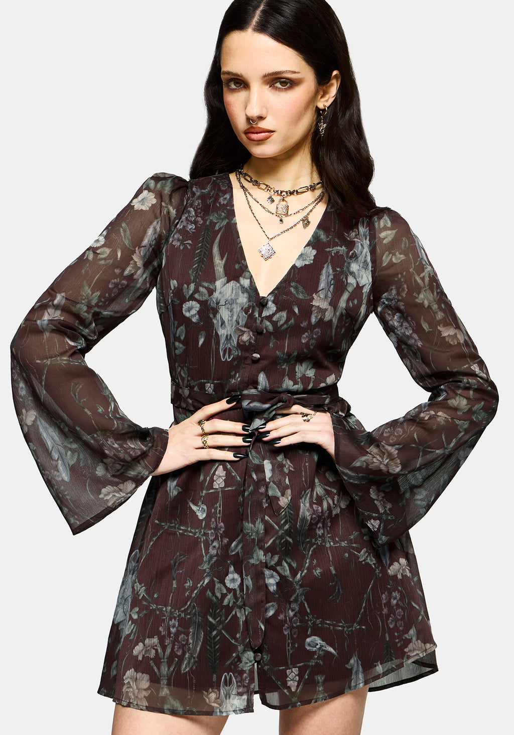 Dusha Garden Print Button Up Chiffon Mini Dress