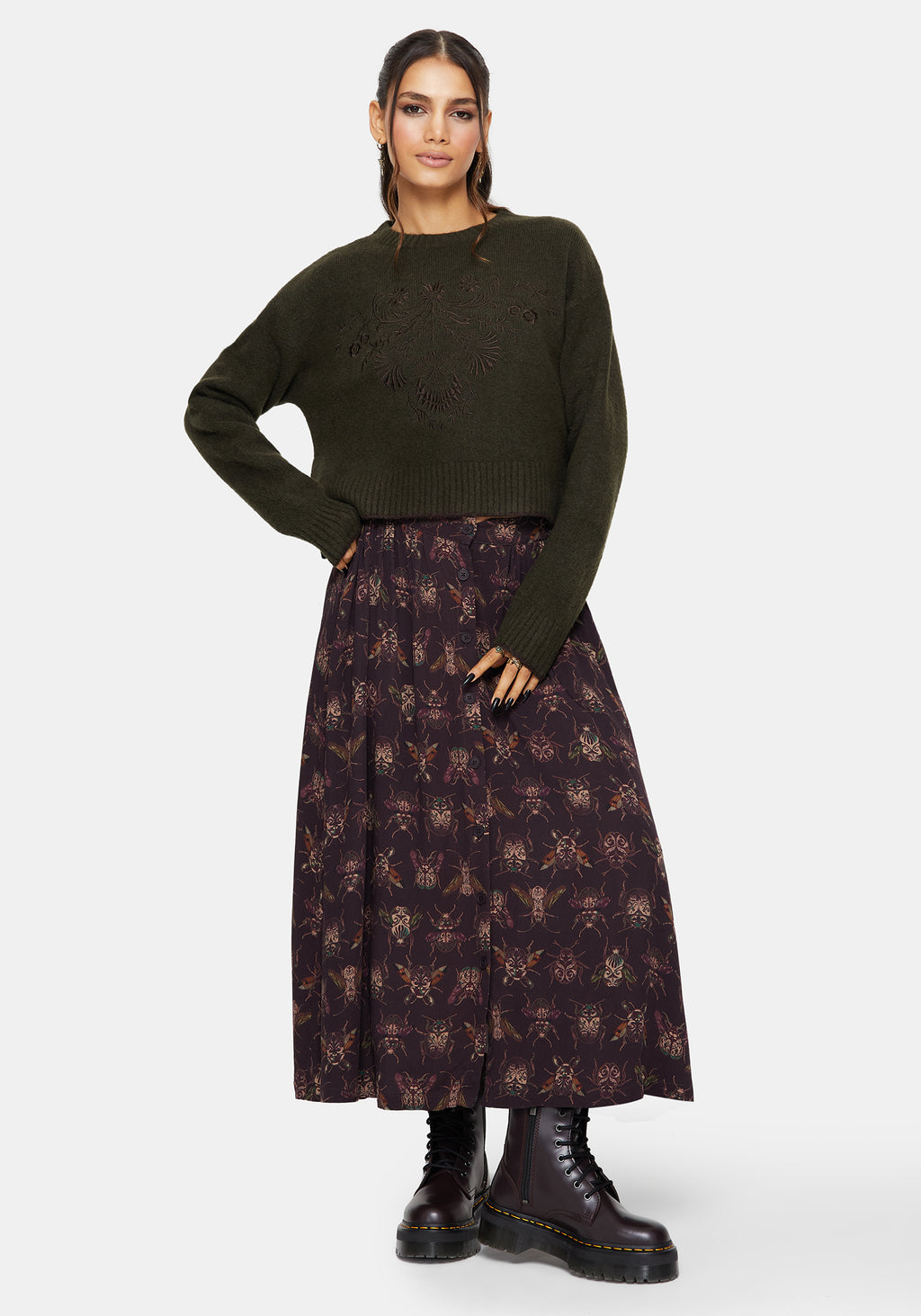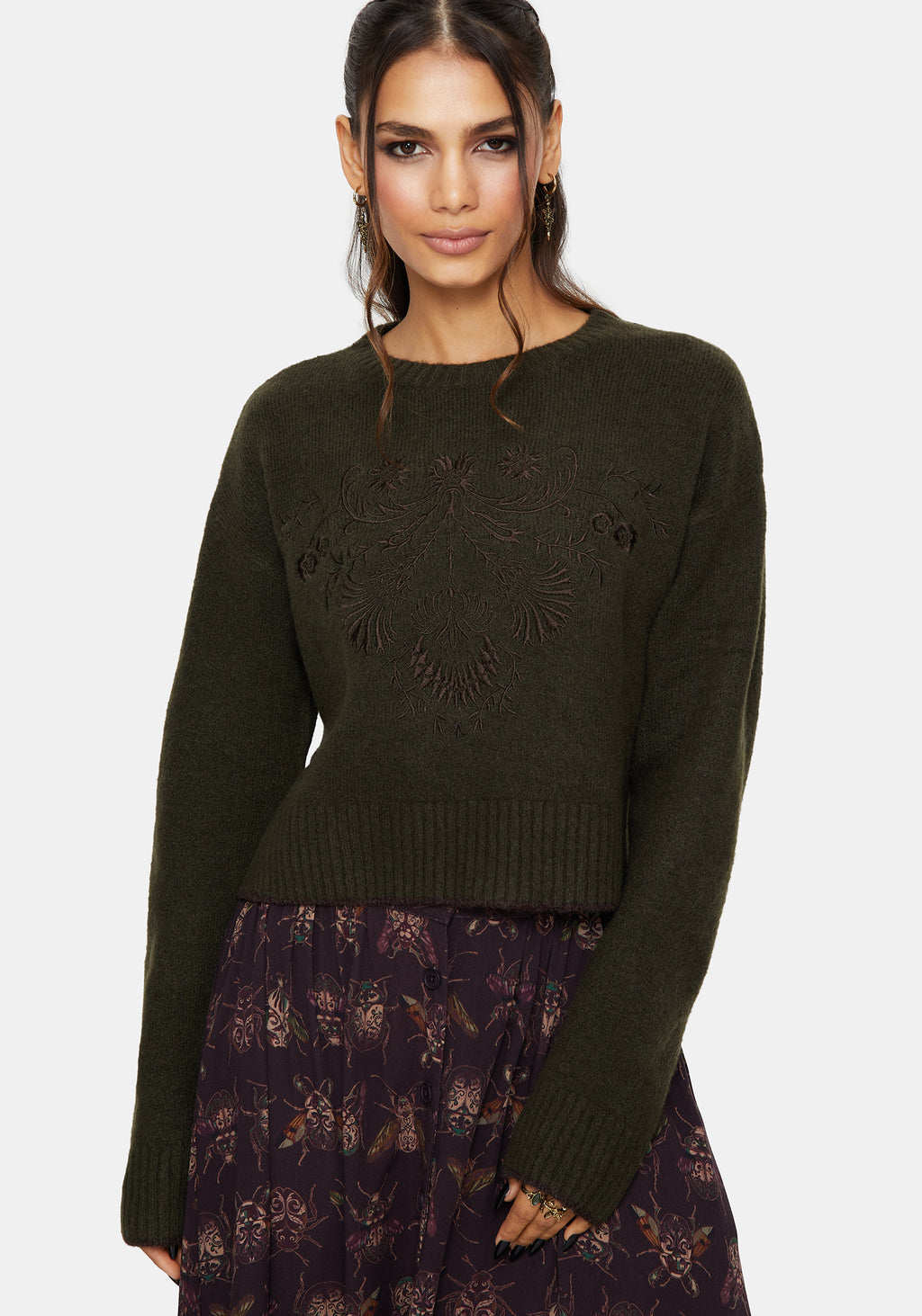 Eclipsia Floral Embroidered Cropped Knit Jumper