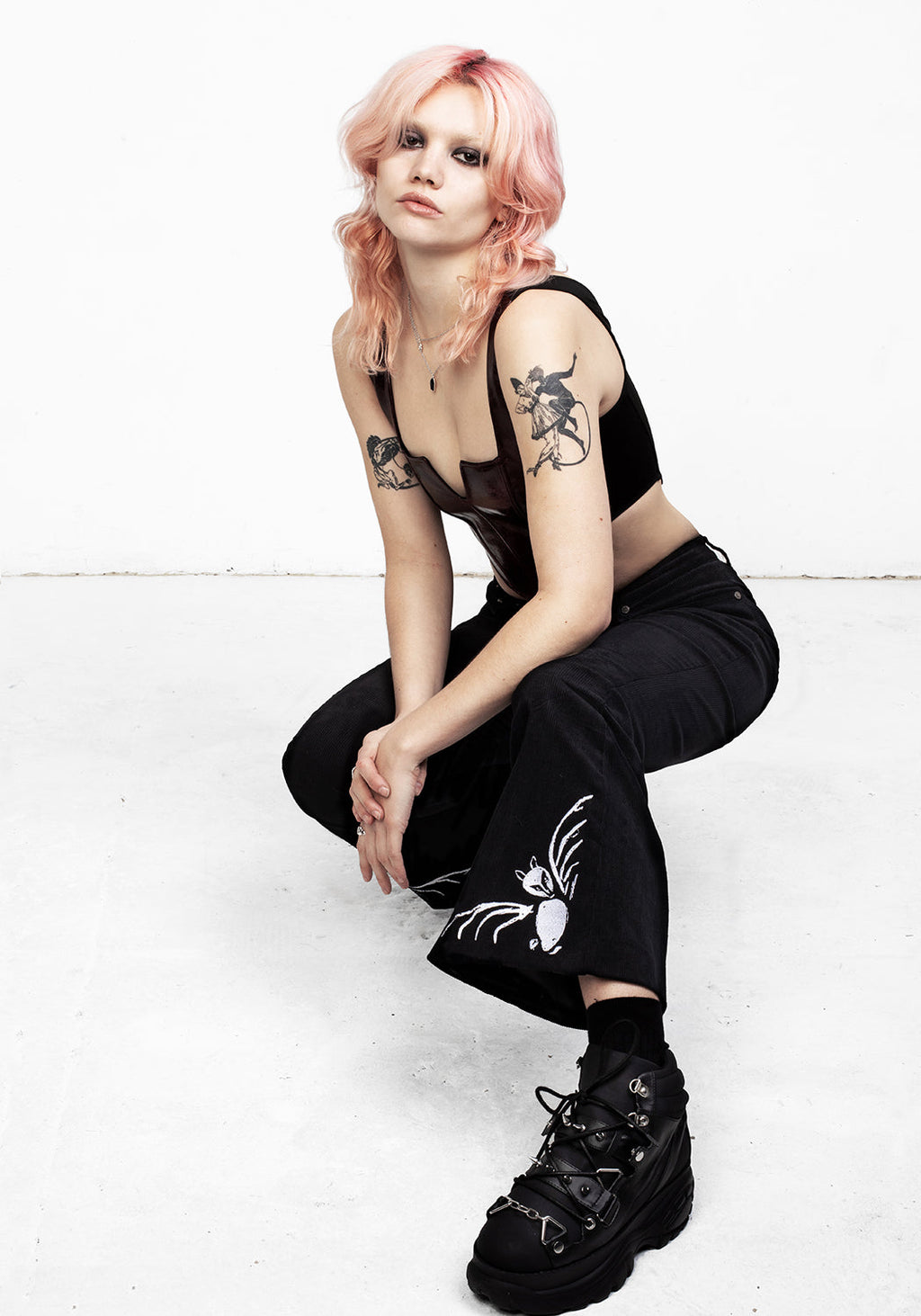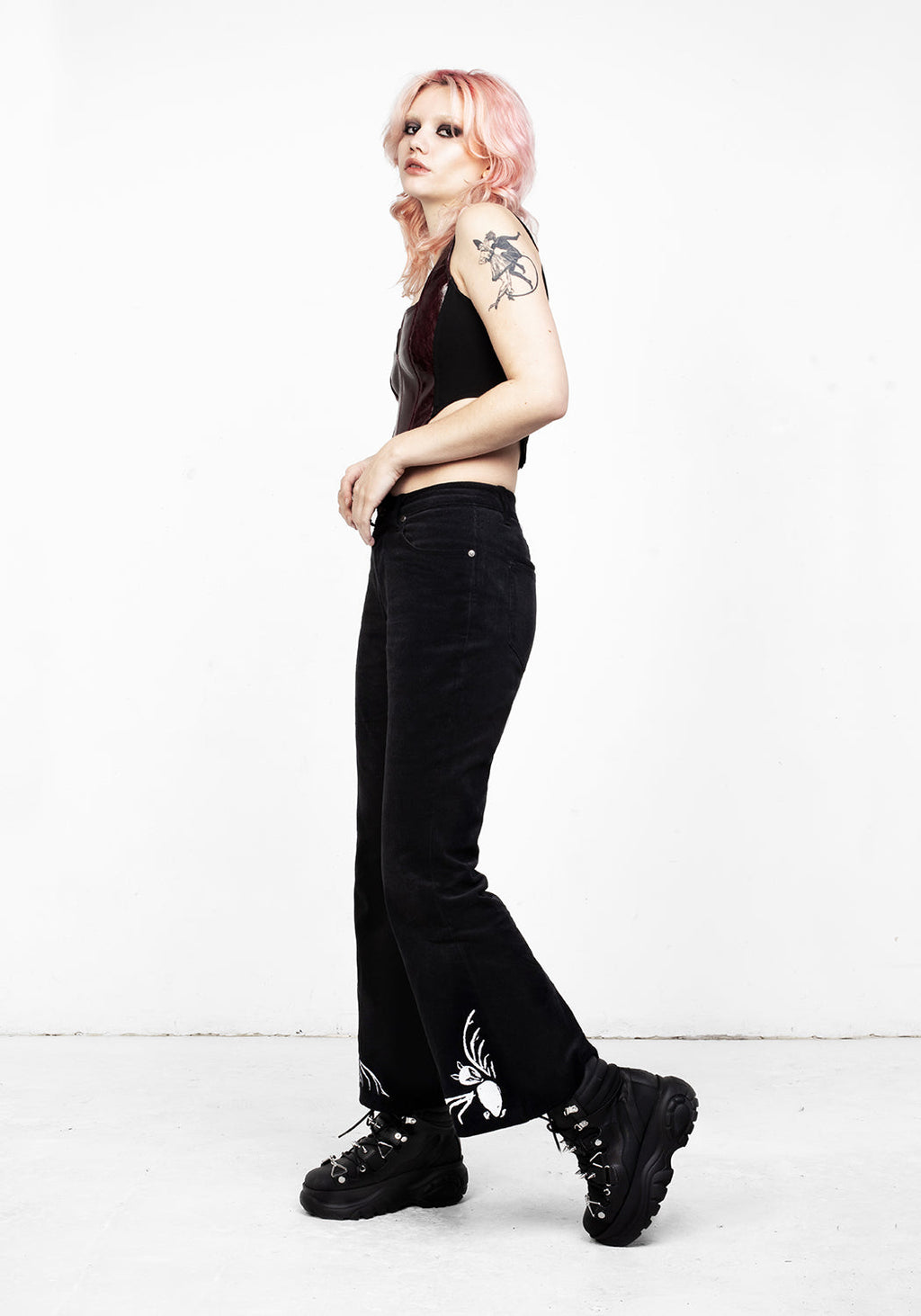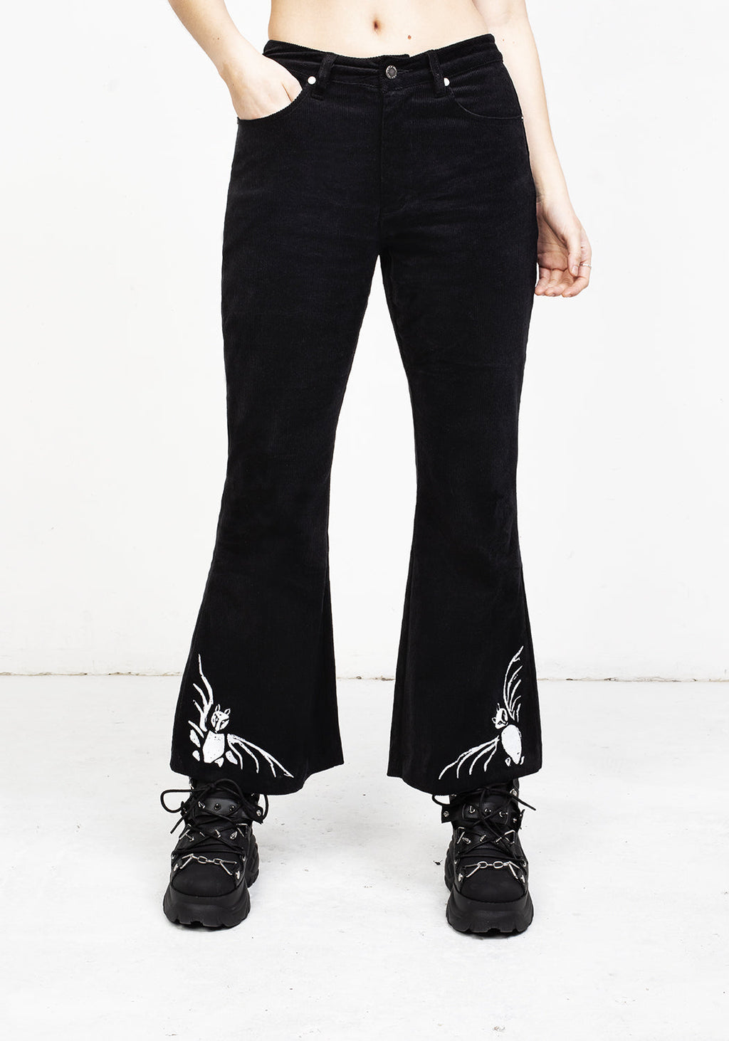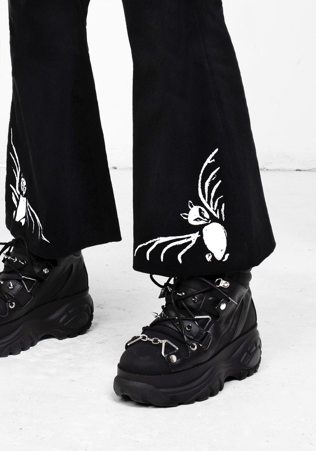 ✦ Bat embroideries (white) on bell bottom hems