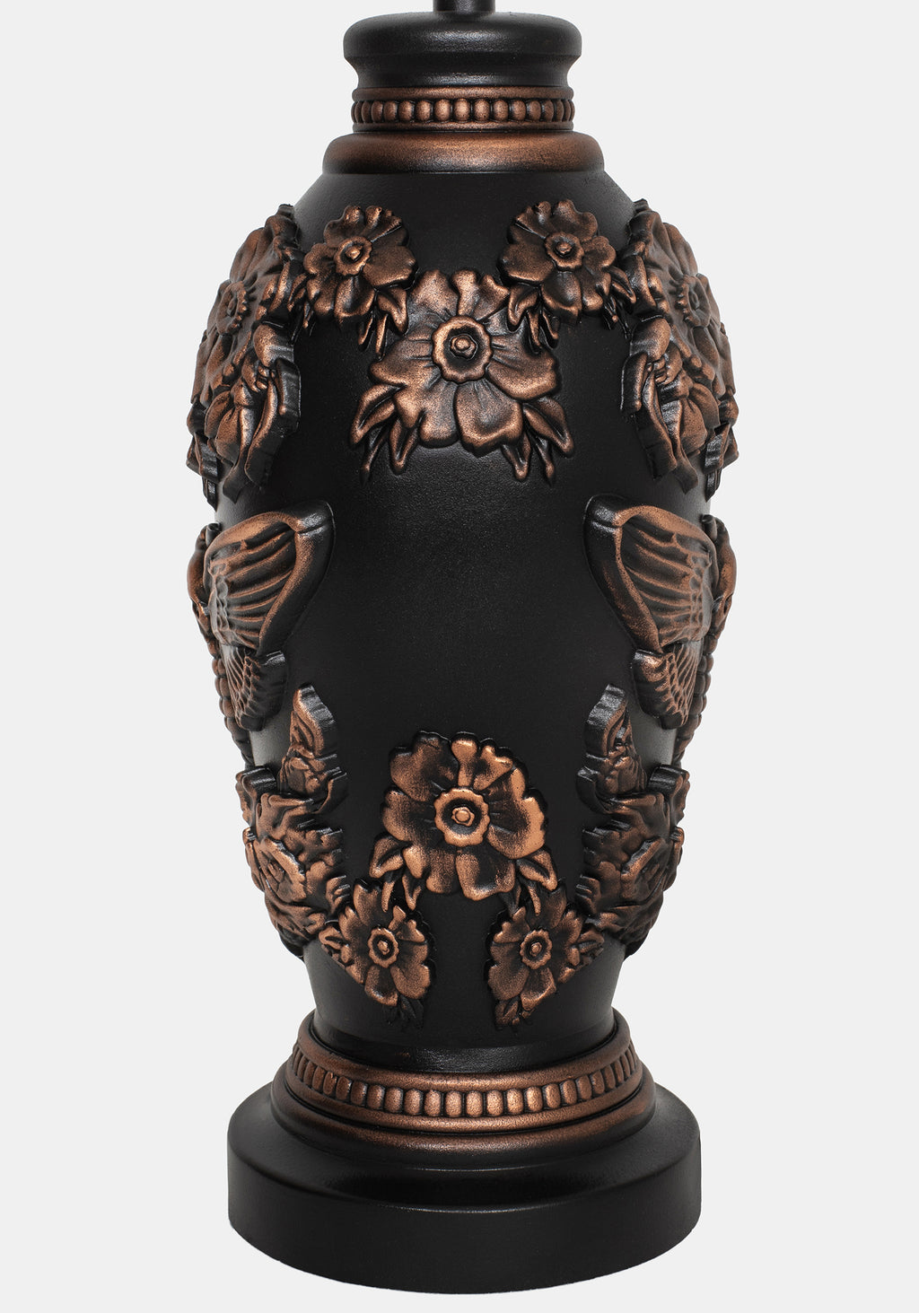 Elegant black floral death moth design, accented with shimmering bronze gilding