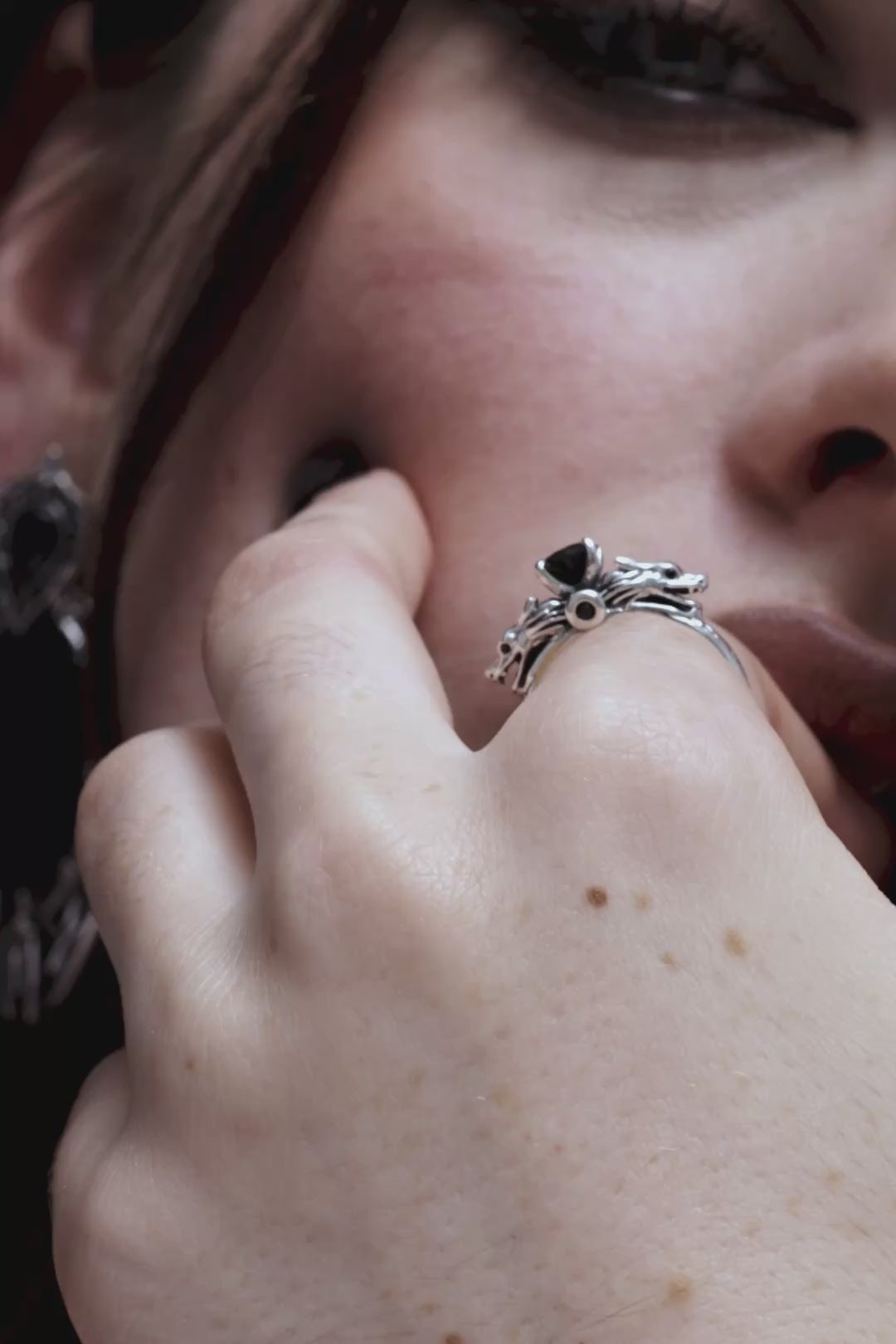 Teara Skull Sterling Silver Black Spinel RingTeara Skull Sterling Silver Black Spinel Ring