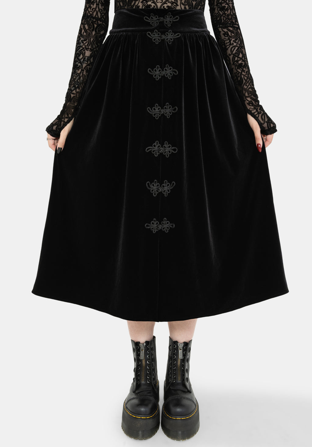 Nova Velour Frog Closure Midi Skirt