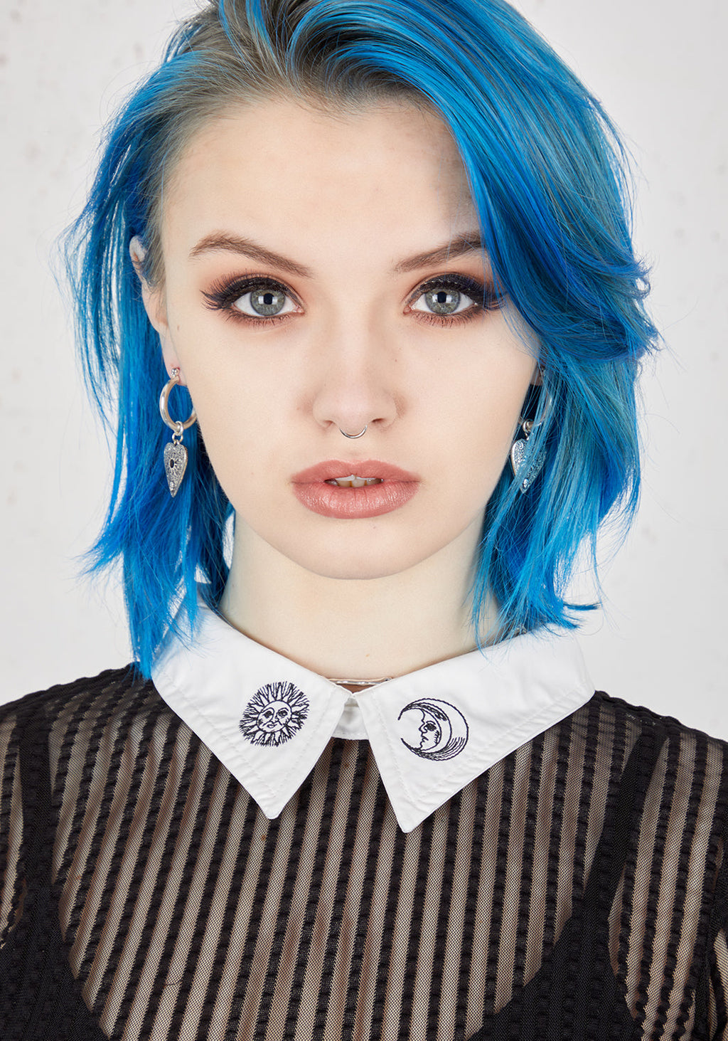✹ Gorgeous white collar with sun & moon embroideries, fastens at back with 2-button keyhole opening
