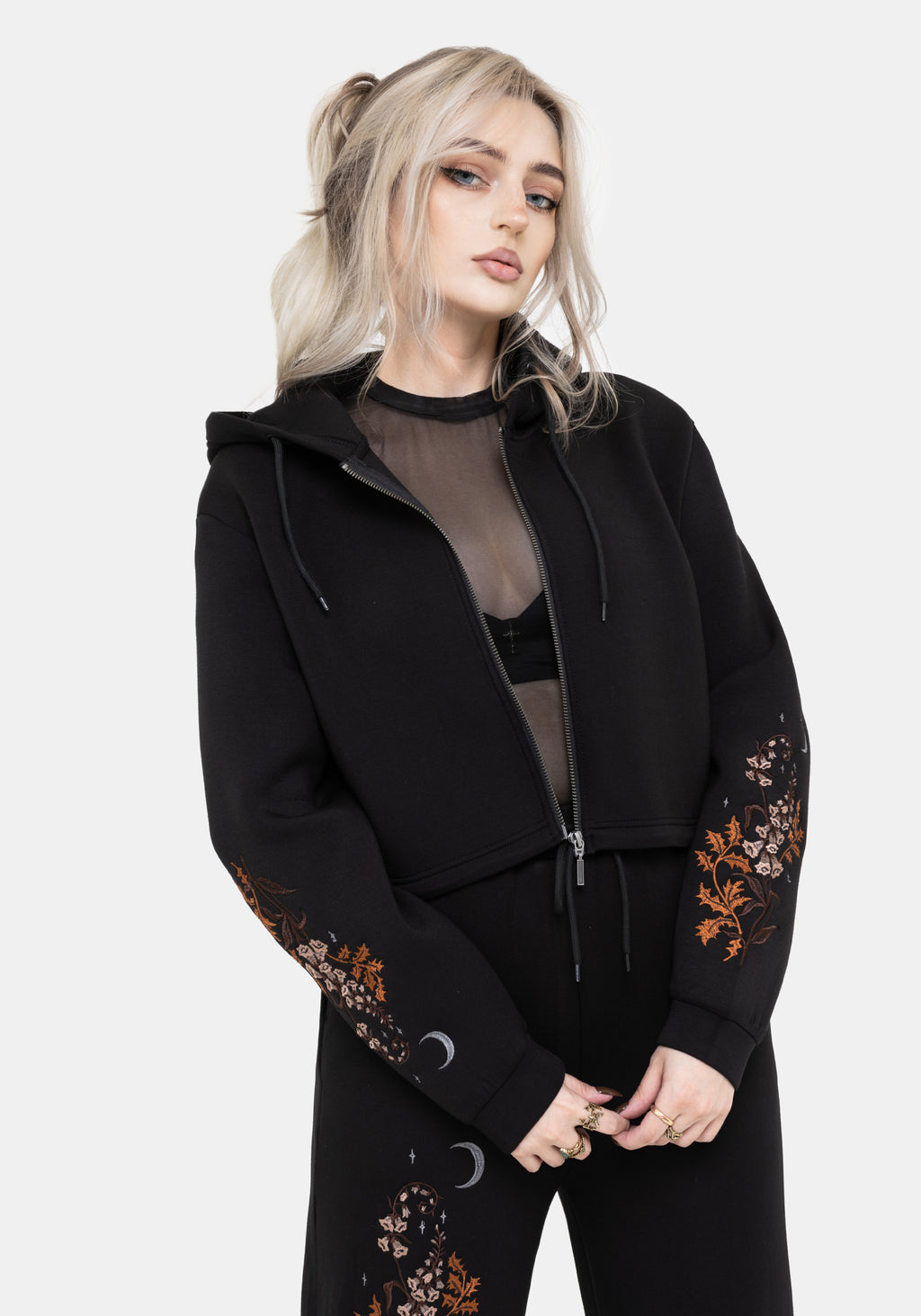Foxglove Embroidered Zip Up Cropped Hoodie