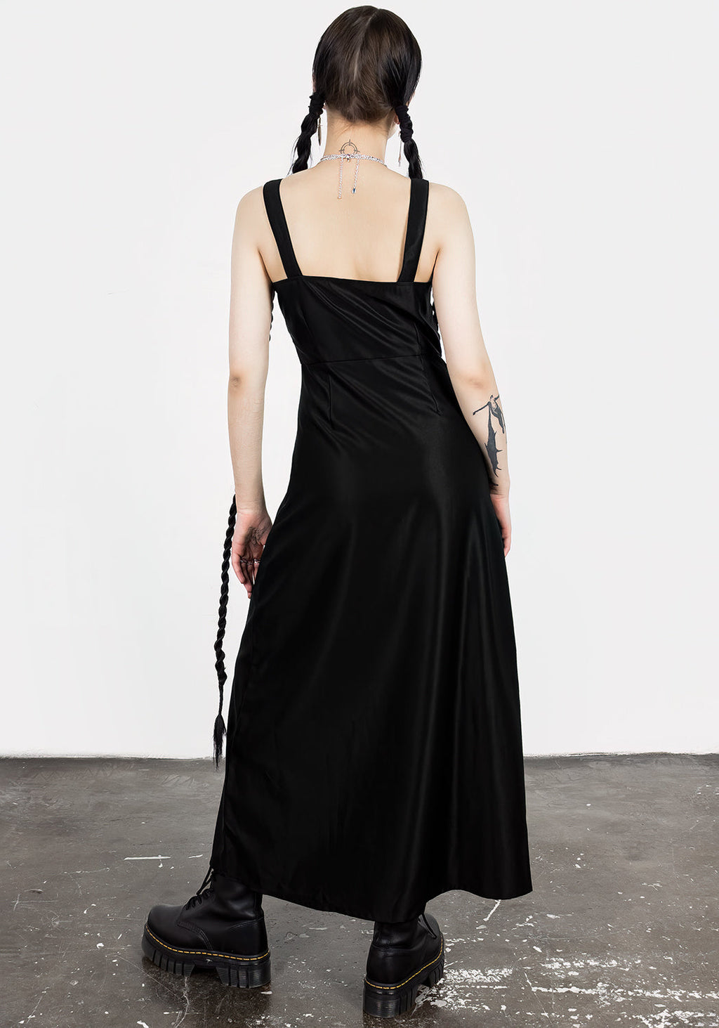 - Sleek, shiny black fabrication for a glamourous edge (very slight stretch)