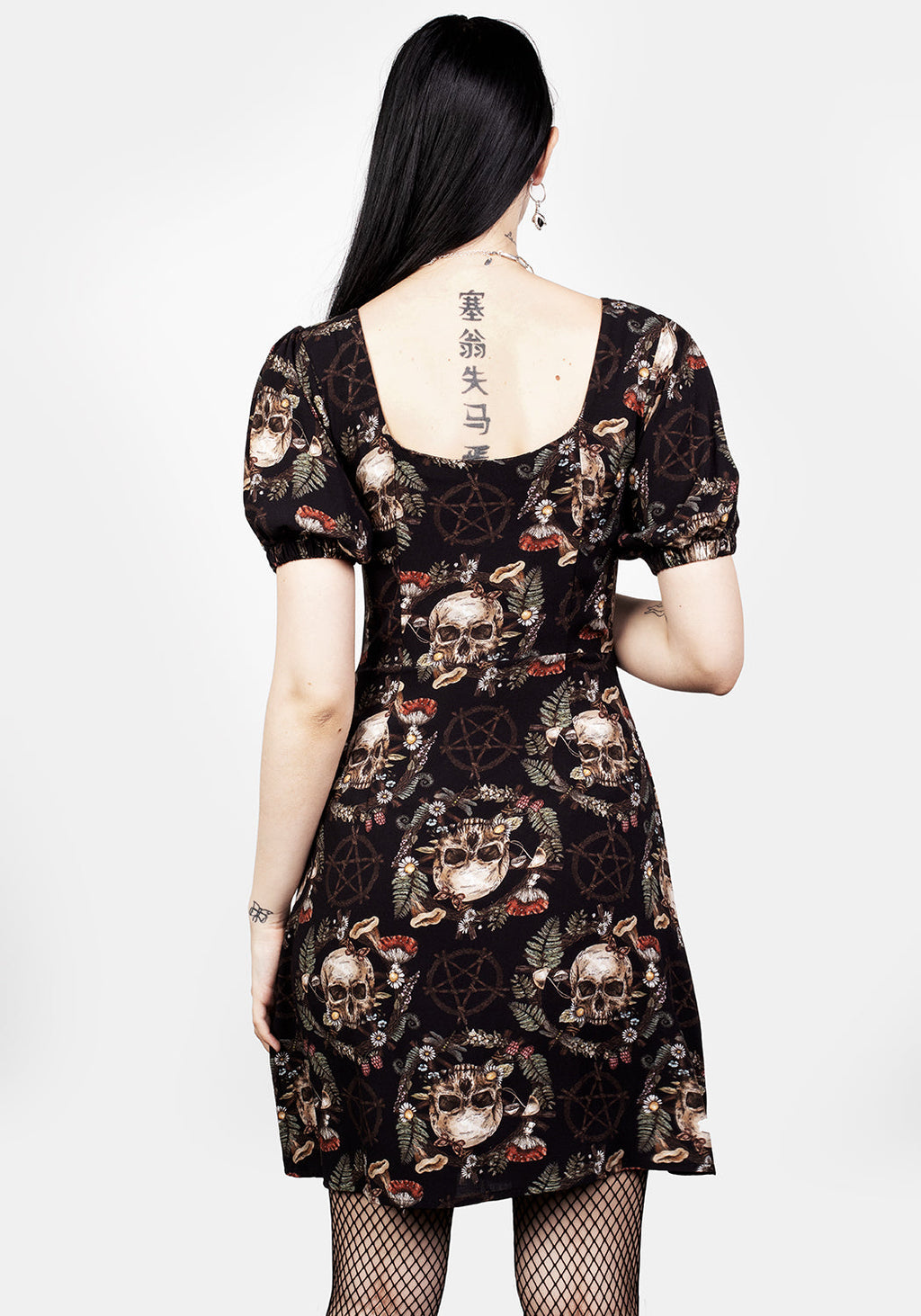 ✦ Morbid mycological print features mushroom, skull and pentagram motif