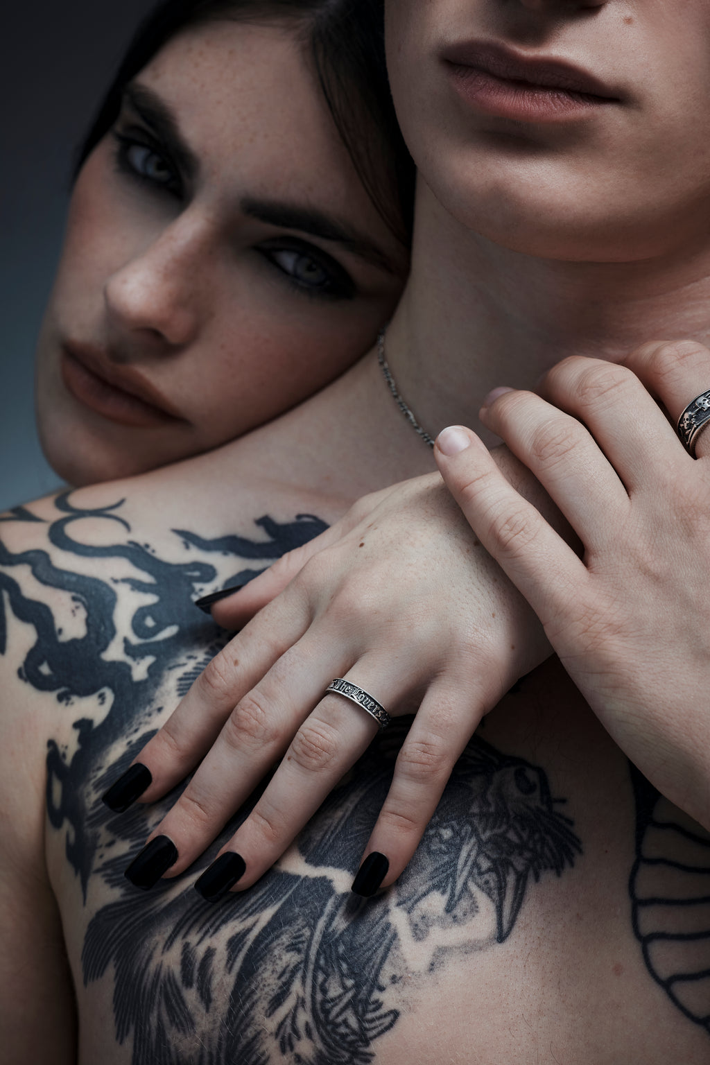Our Devotion Rings are more than jewellery and are symbols of commitment, and the beautiful stories that bind us together. Unisex by design and rich in symbolism, each ring is designed to last a lifetime, a long-wearing statement for lovers, partners, soulmates, or the ones who walk beside you. Perfect as an alternative engagement ring, a bold wedding band, a pact between friends, or a gift of devotion for Christmas, a birthday or anniversaries, or at the threshold of a life long promise.