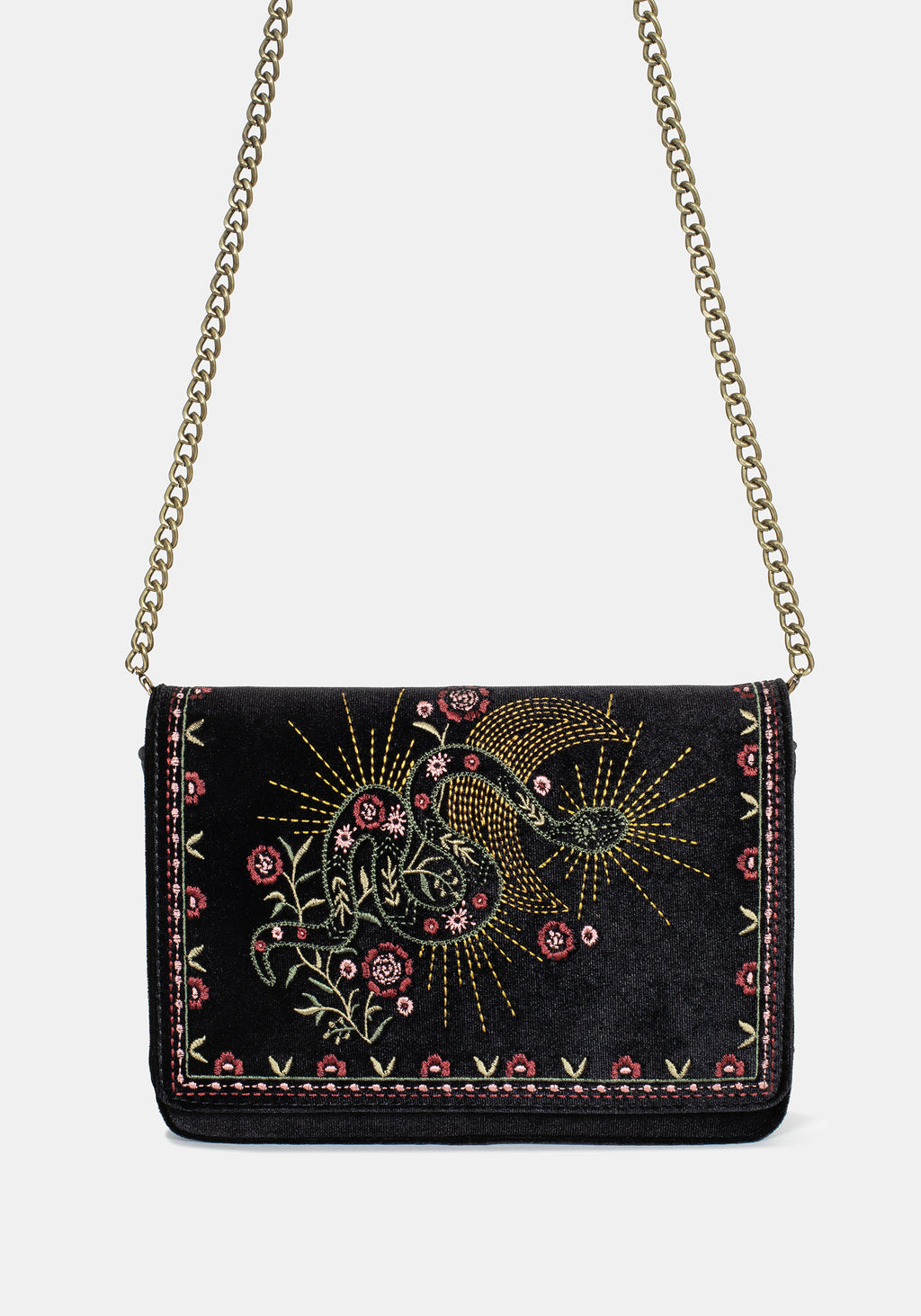 • Black Velour Snake Embroidered Bag