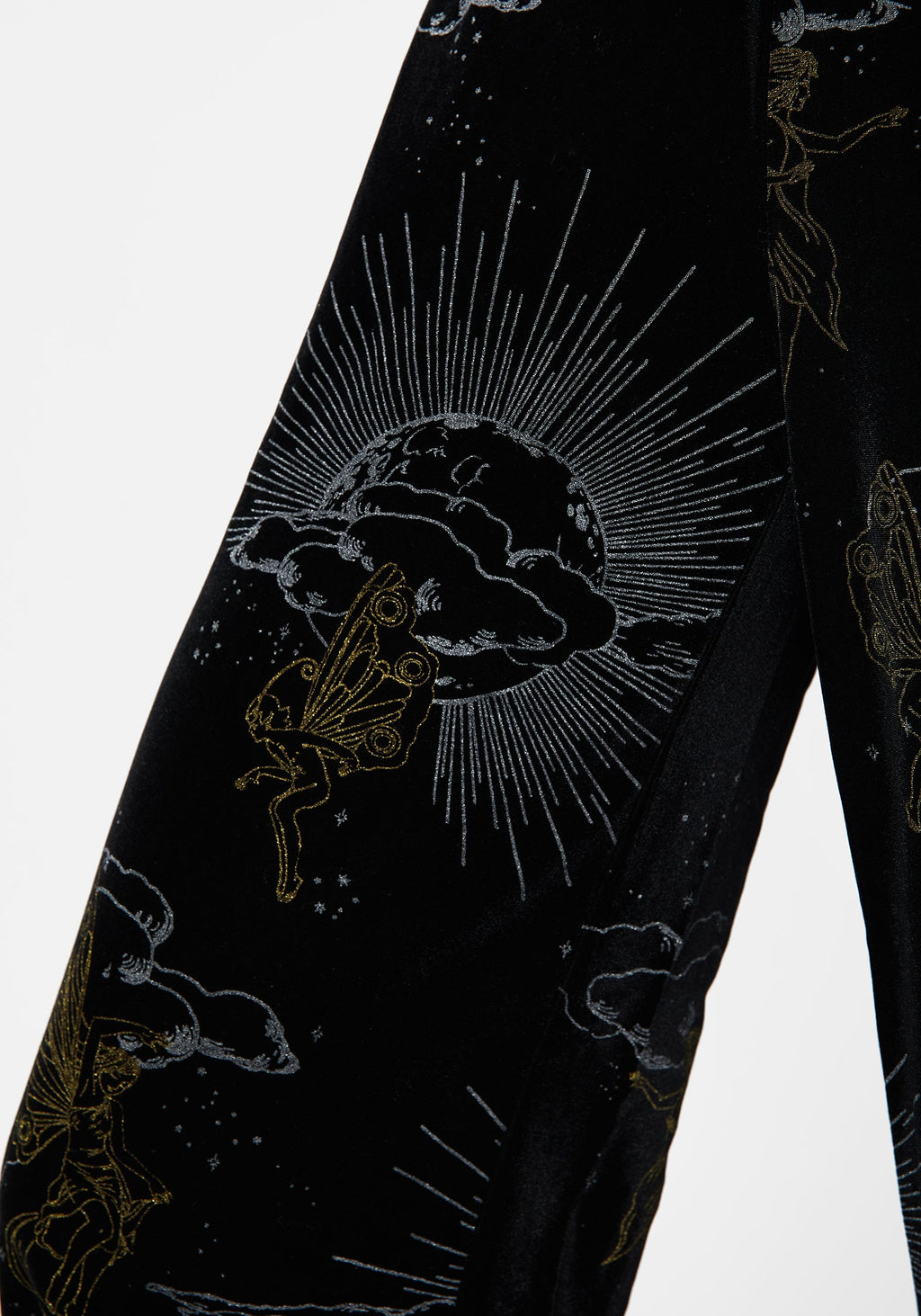 - Sumptuous black velour with gold & silver fairy & cloud foiled print