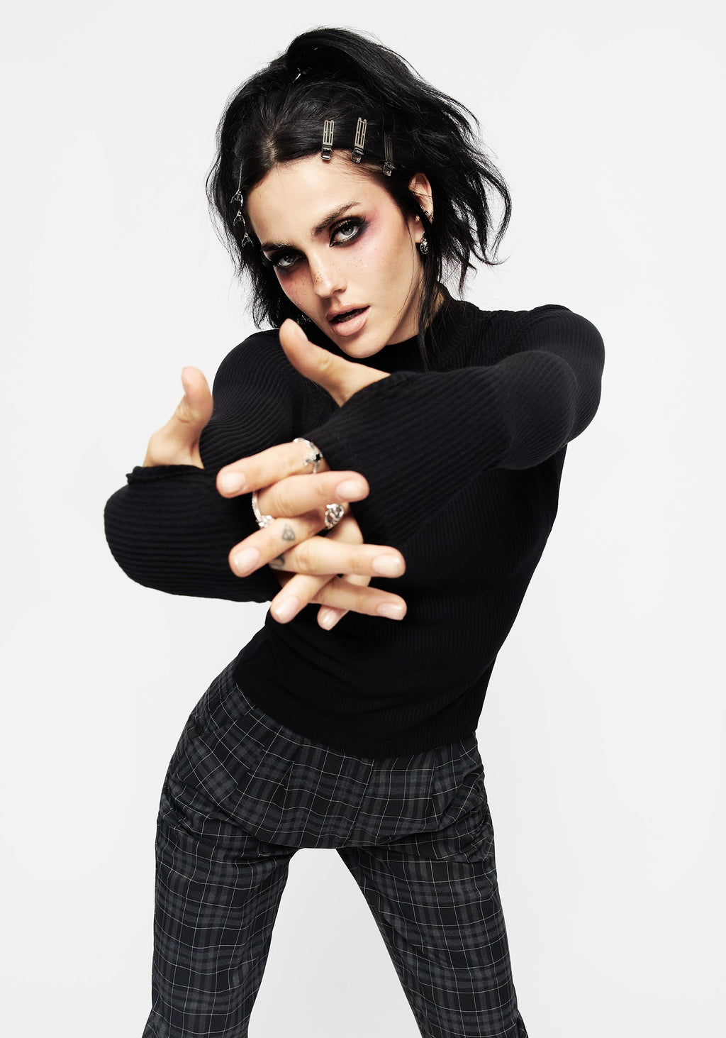 - Slim, bodycon fit in a long-crop length (hits below natural waistline)