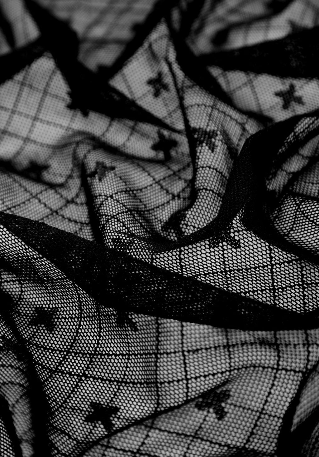✦ Deep V-neck and low-scoop back balance long leg-of-mutton sleeves