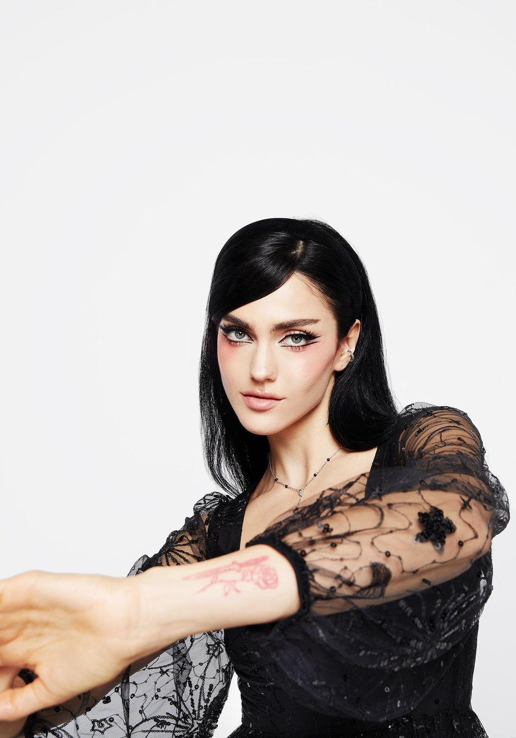 - Sultry side split in skirt adds movement