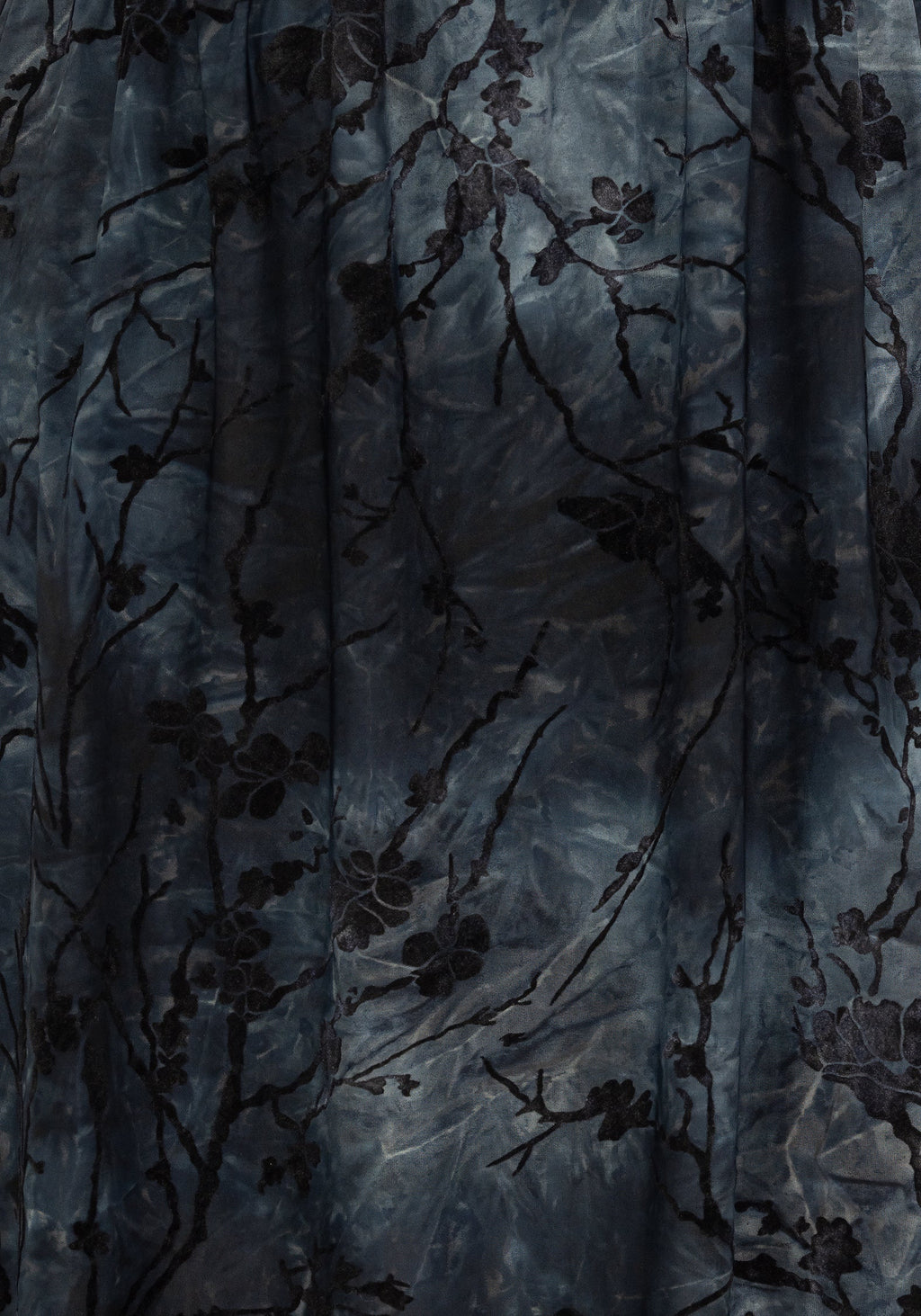 - Tie-dye effect blue fabrication with a black flocked velour design