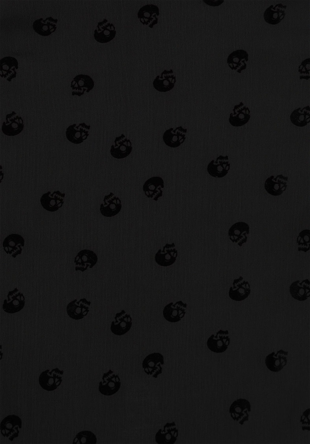 - Textured sheer chiffon fabrication with flocked velour all-over skull motif