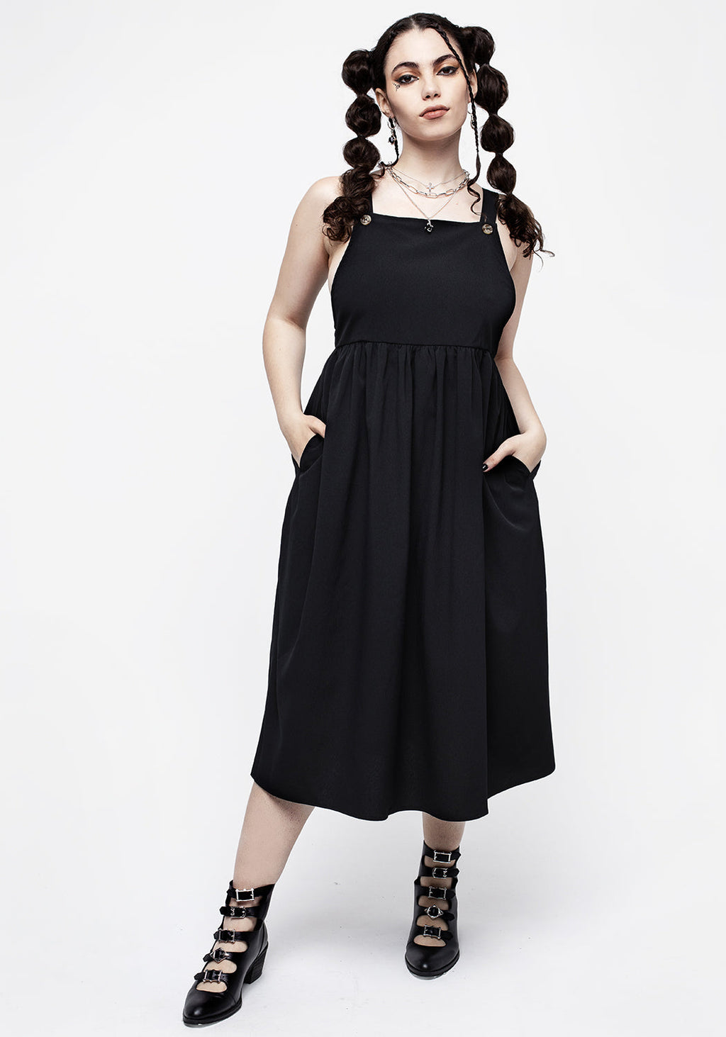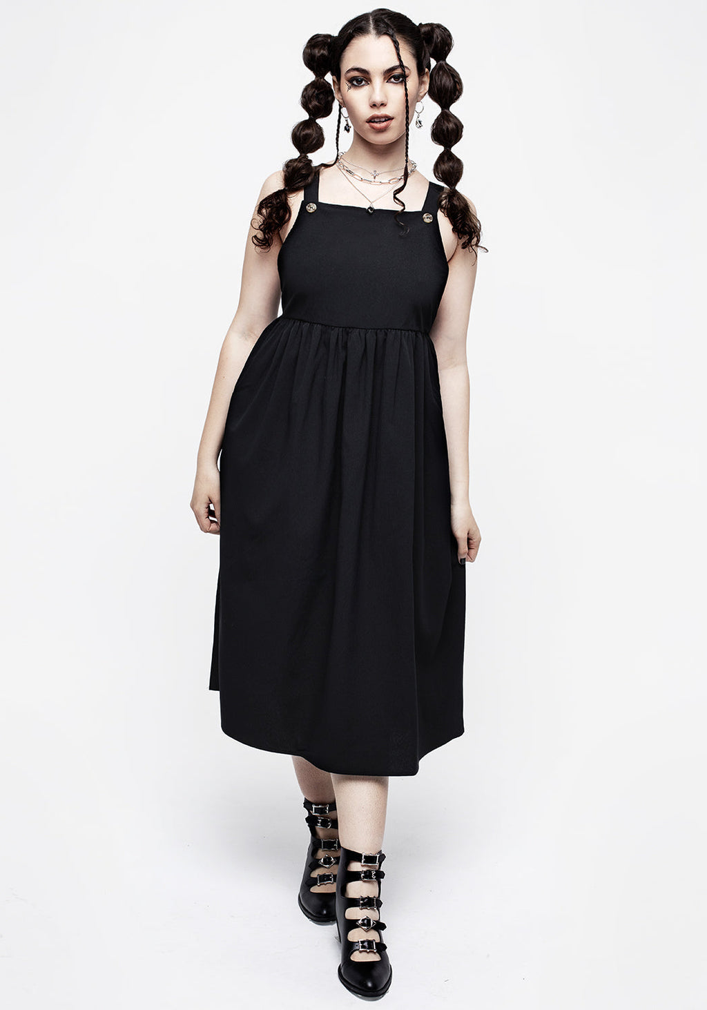- Buttoned straps attach to front flap to form a framing squared neckline