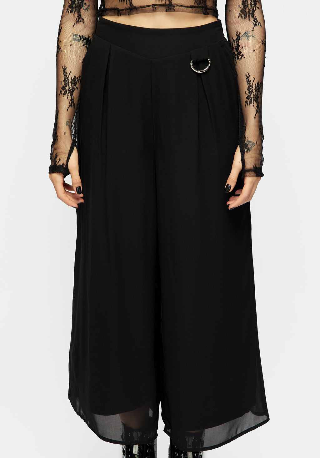- Black lined chiffon wide-legged culotte trousers