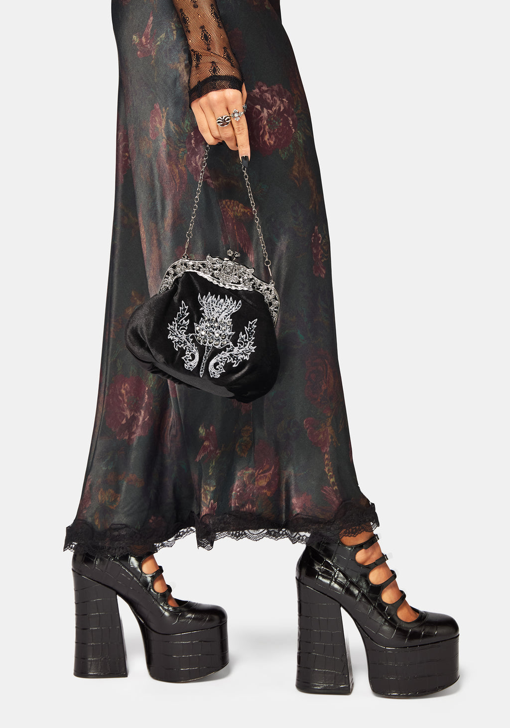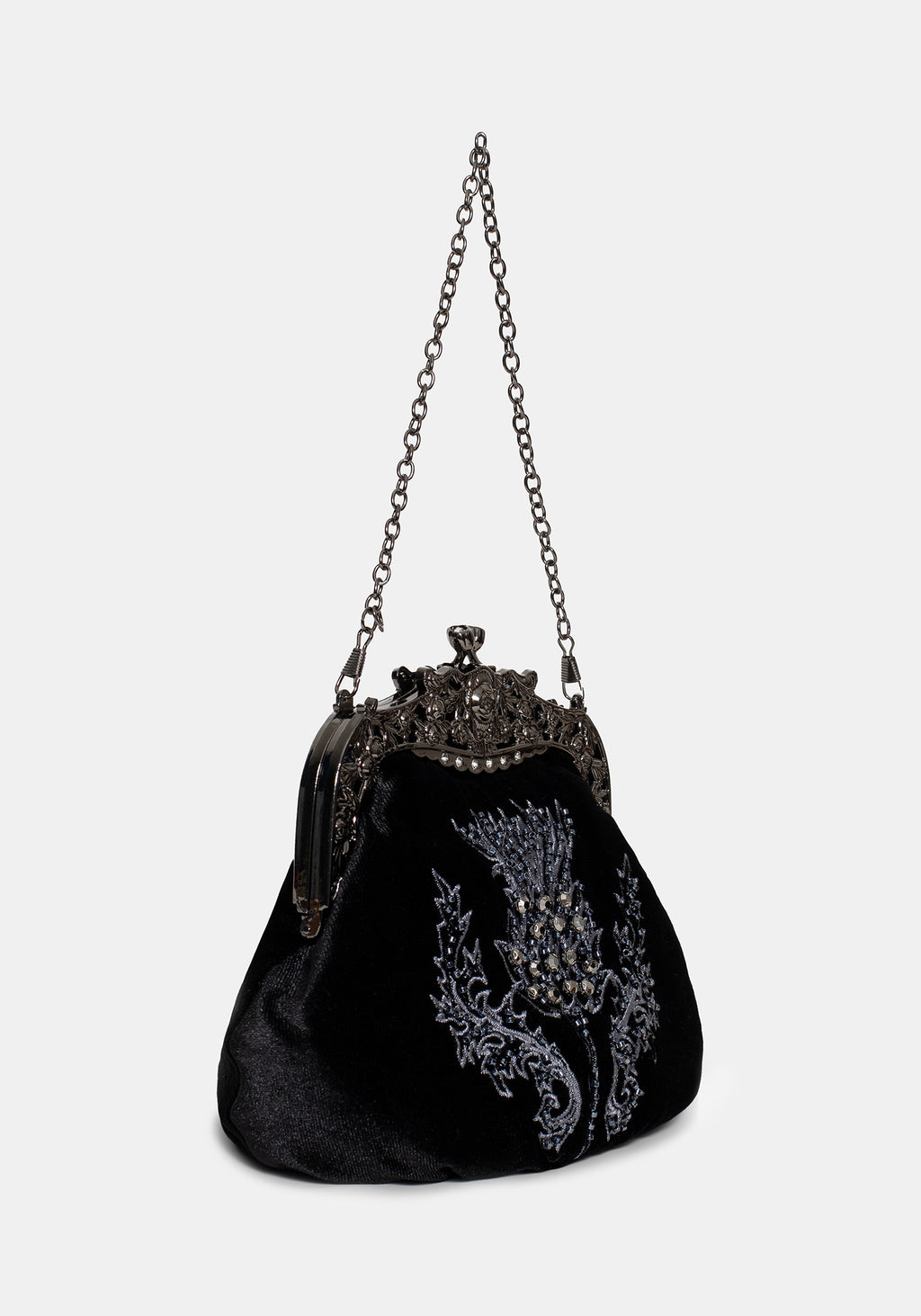 Despair Thistle Beaded Kiss Lock Pouch Bag