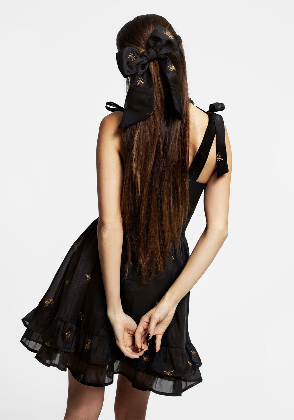 Insectarium Embroidered Organza Bow Barrette Hair Clip