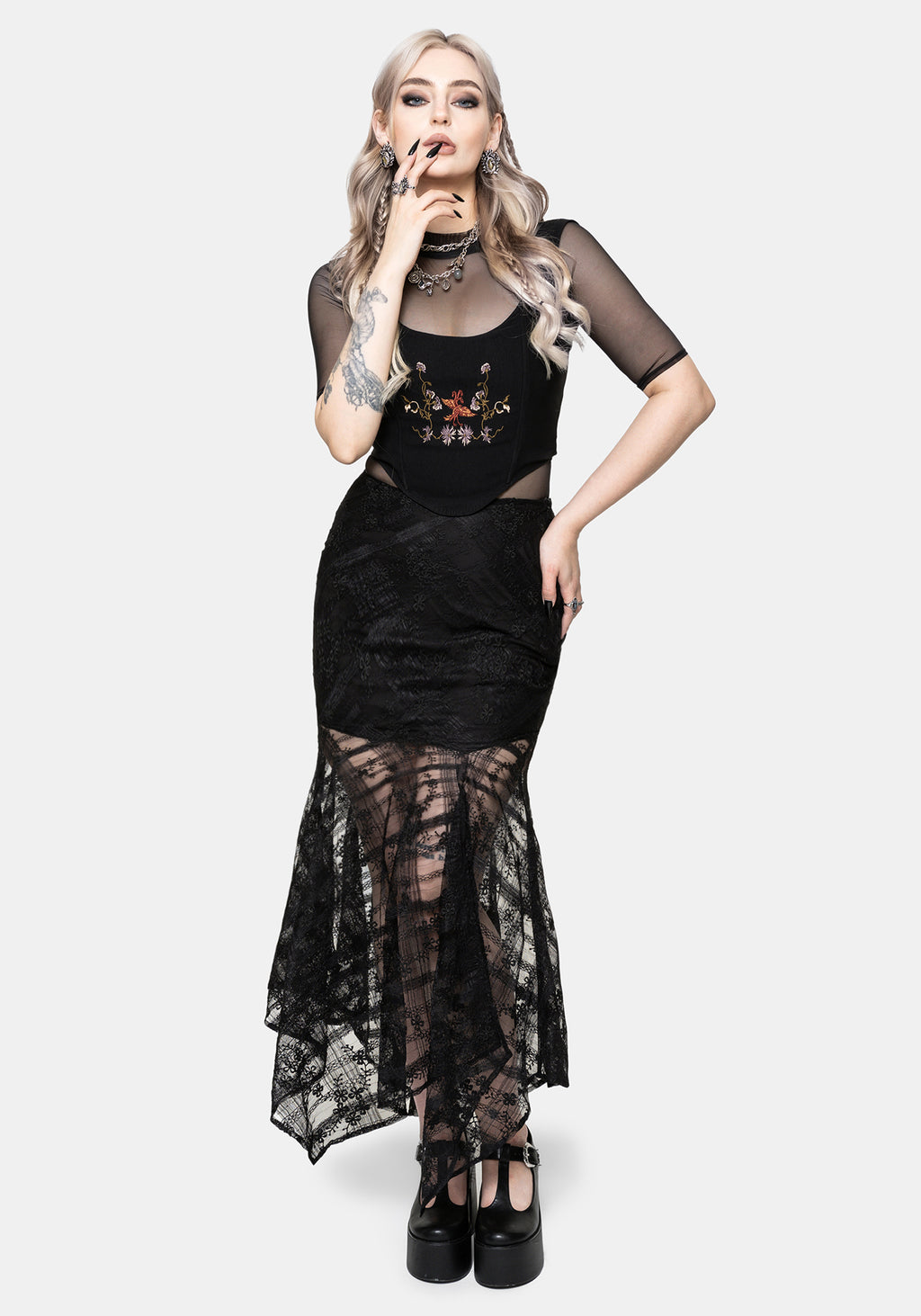 Lucie Lace Asymmetric Hanky Maxi Skirt