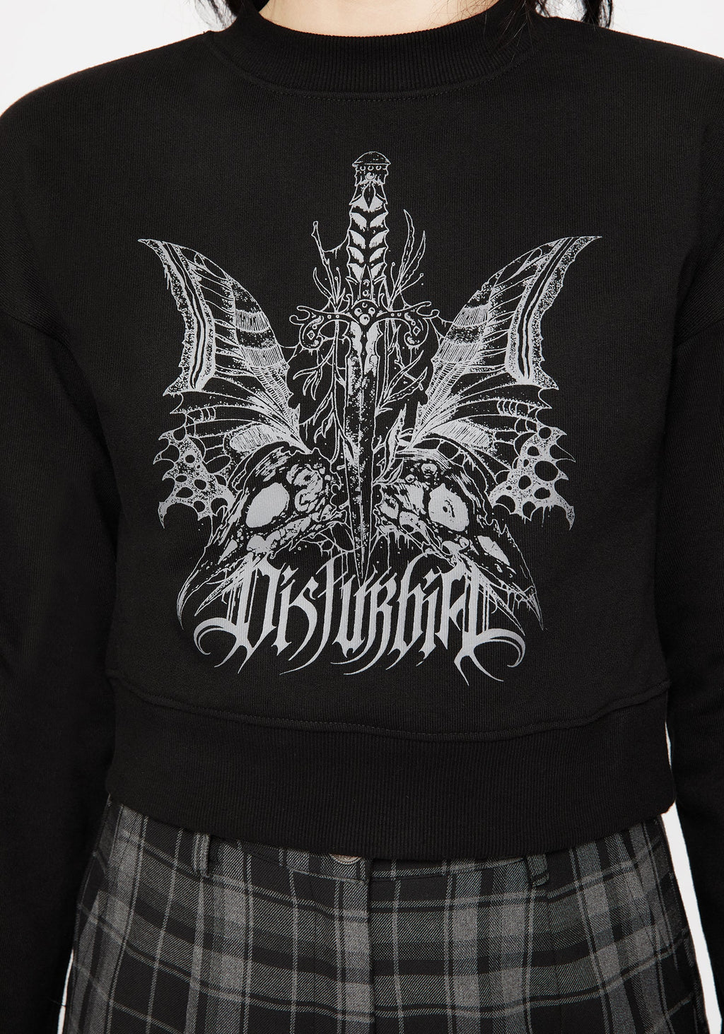 • Black Requiem Print Crew Neck Crop Sweatshirt