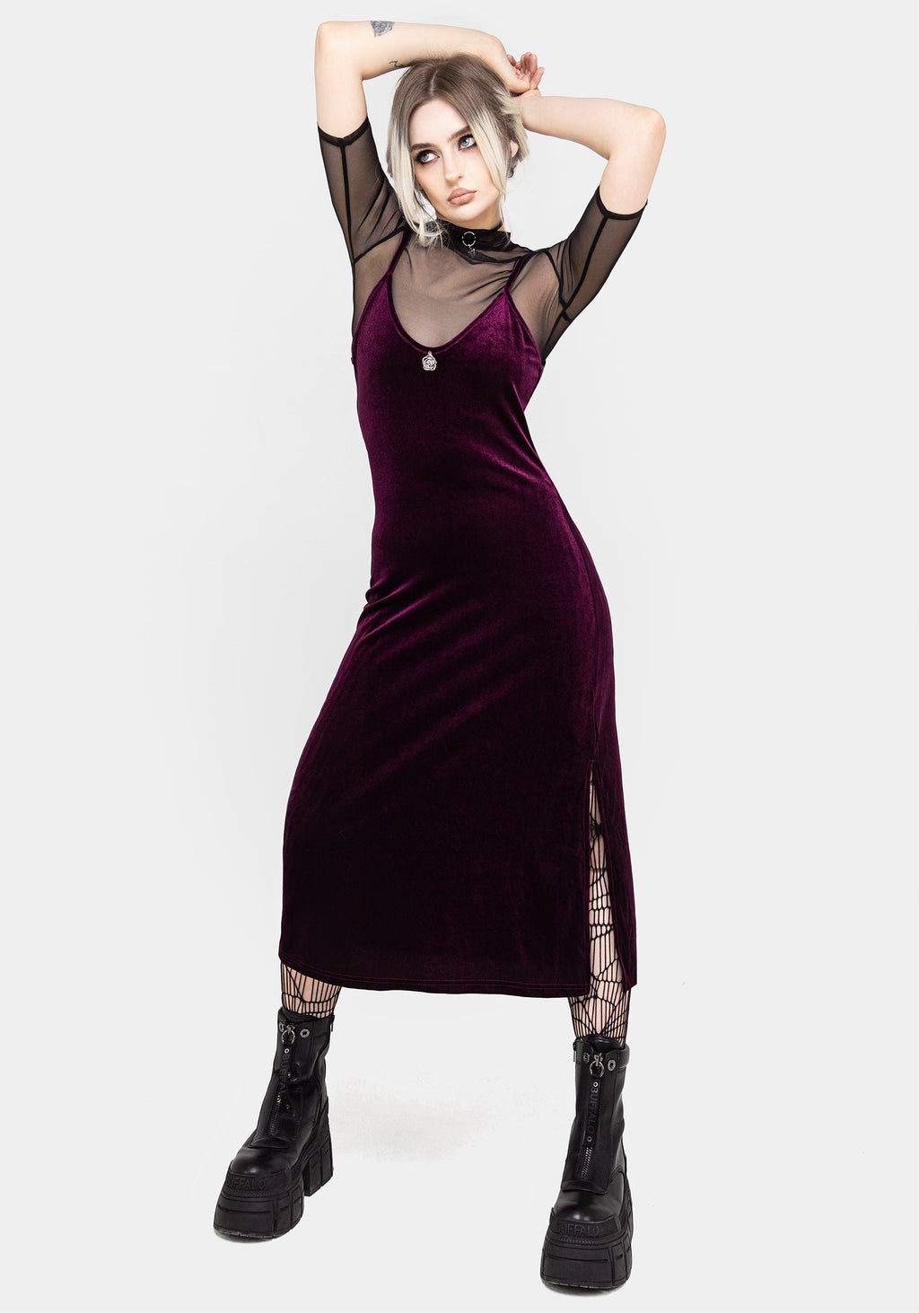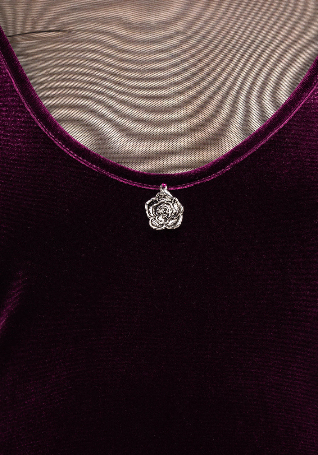 ✦ Spaghetti self-fabric straps flow into demure scoop neck