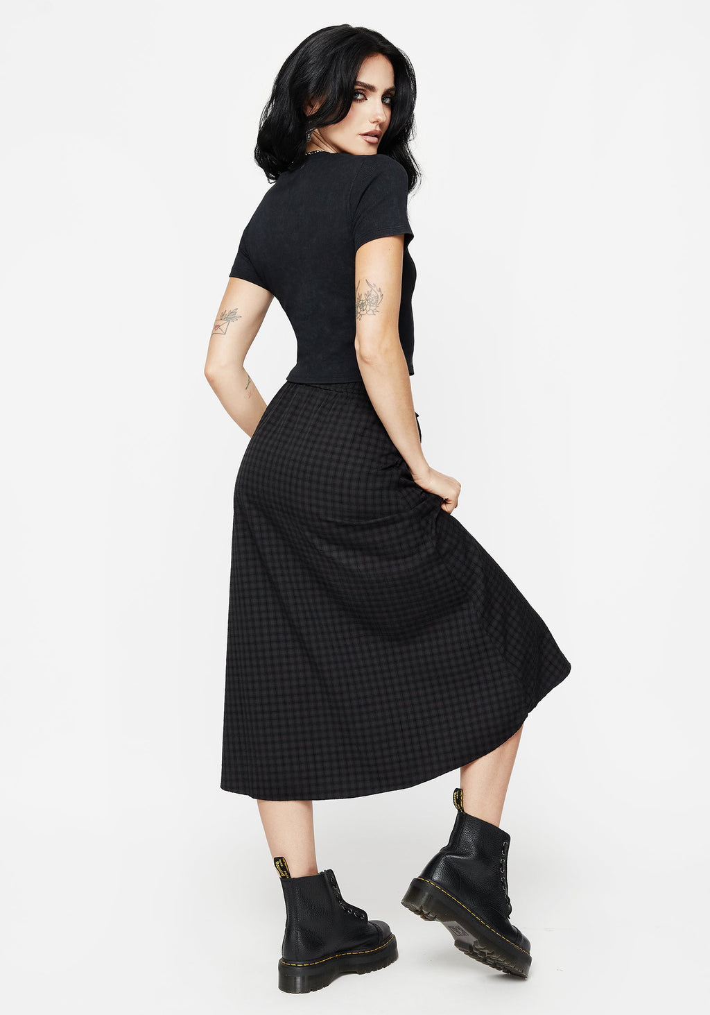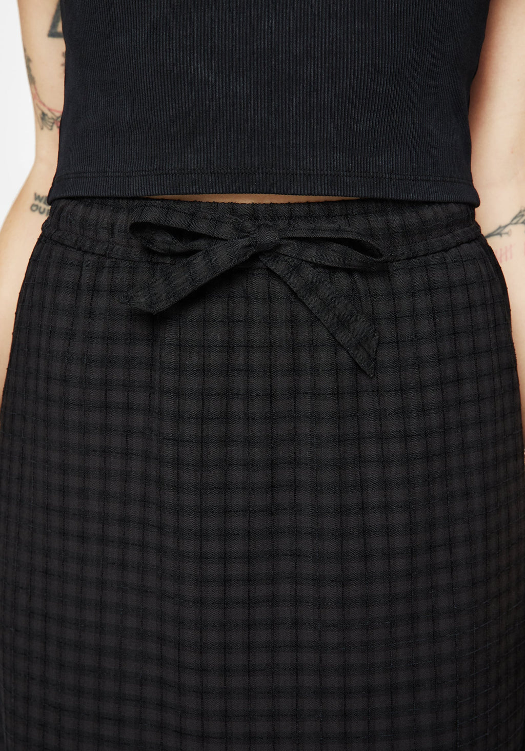 • Black and Grey Check Midi Skirt
